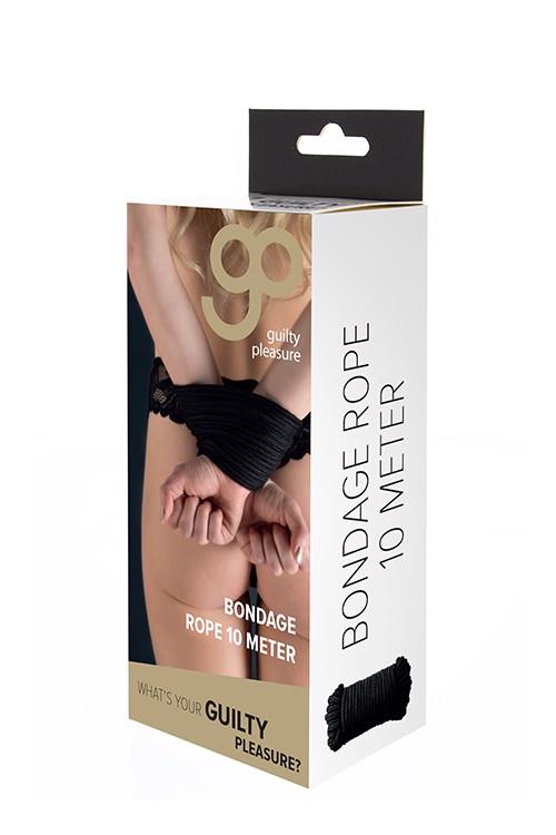 Super soft black bondage rope, from the Guilty Pleasure BDSM collection.Ideal for those new to Japanese-style bondage play, as well as for those more experienced in ‘Kinbaku’ or ‘Shibari’. Made of cotton.Length: 10 meter.