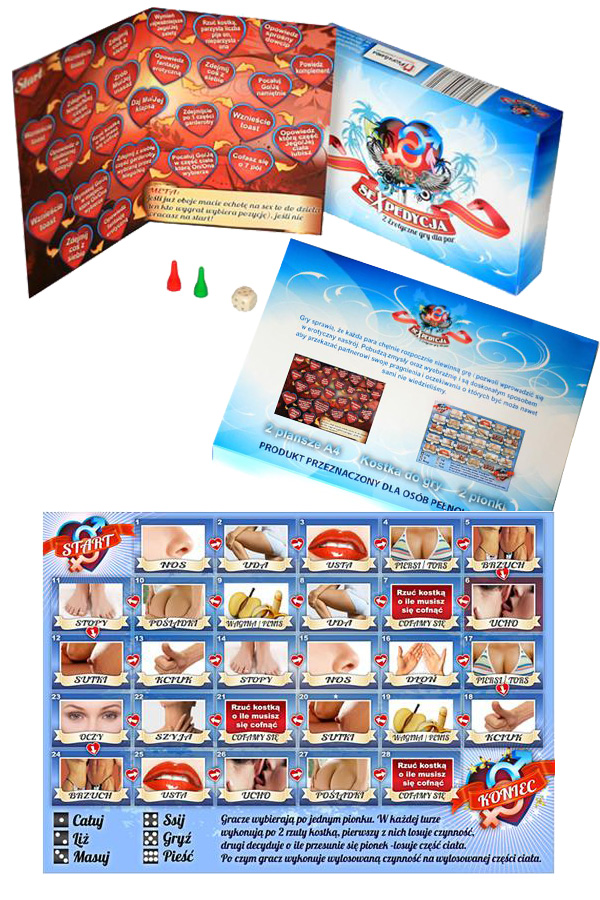 Gra dla Par Super Sexpedycja Specyfikacja: – 2 erotyczne gry – zestaw zapakowany w oryginalne pudełko Zestaw zawiera: – dwustronna plansza w formacie A4 – kostka do gry – 2 pionki.