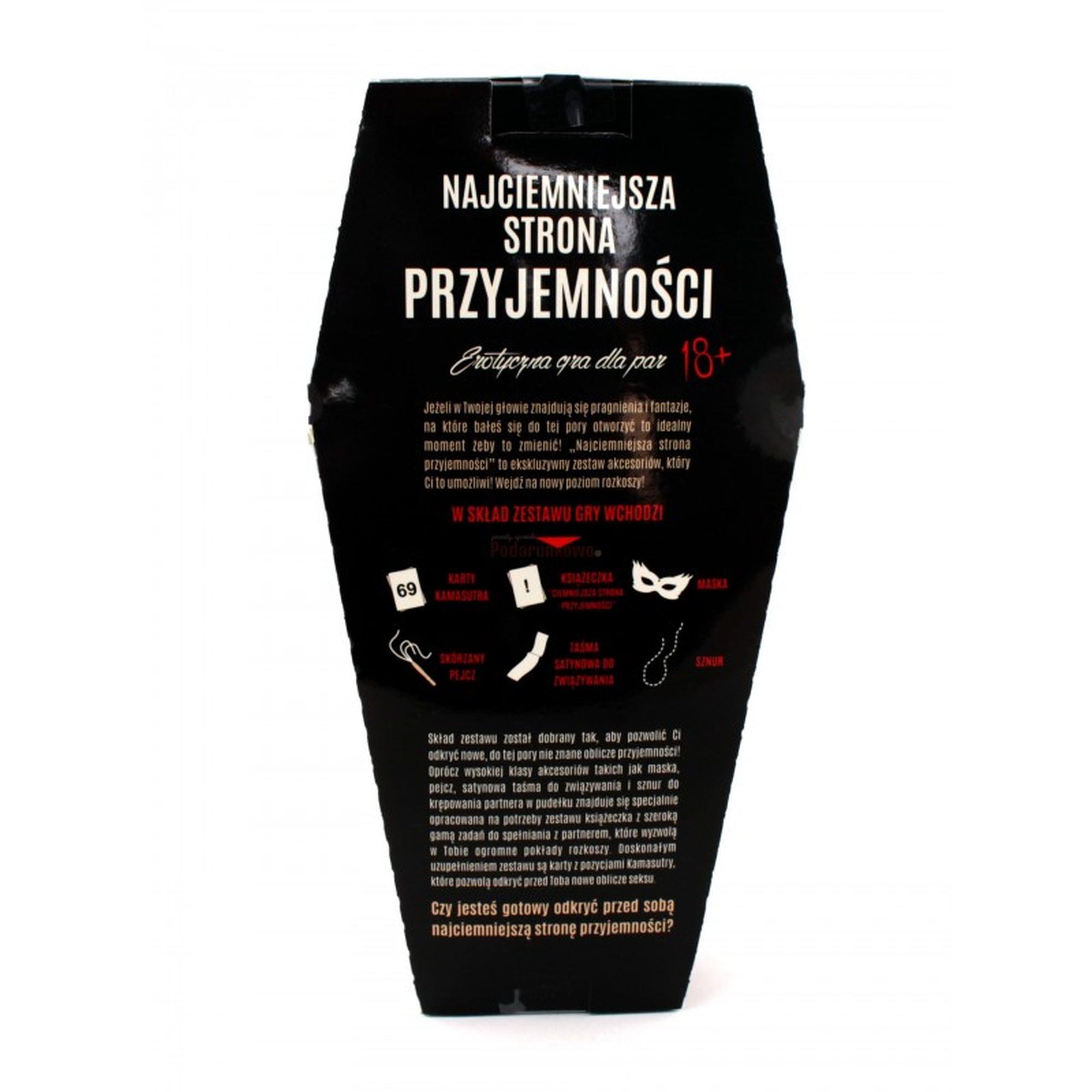 Jeżeli w Twojej głowie znajdują się pragnienia i fantazje, na które bałeś się do tej pory otworzyć to idealny moment żeby to zmienić! Najciemniejsza Strona Przyjemności to ekskluzywny zestaw, akcesoriów, który Ci to umożliwi! Wejdź na nowy poziom rozkoszy!