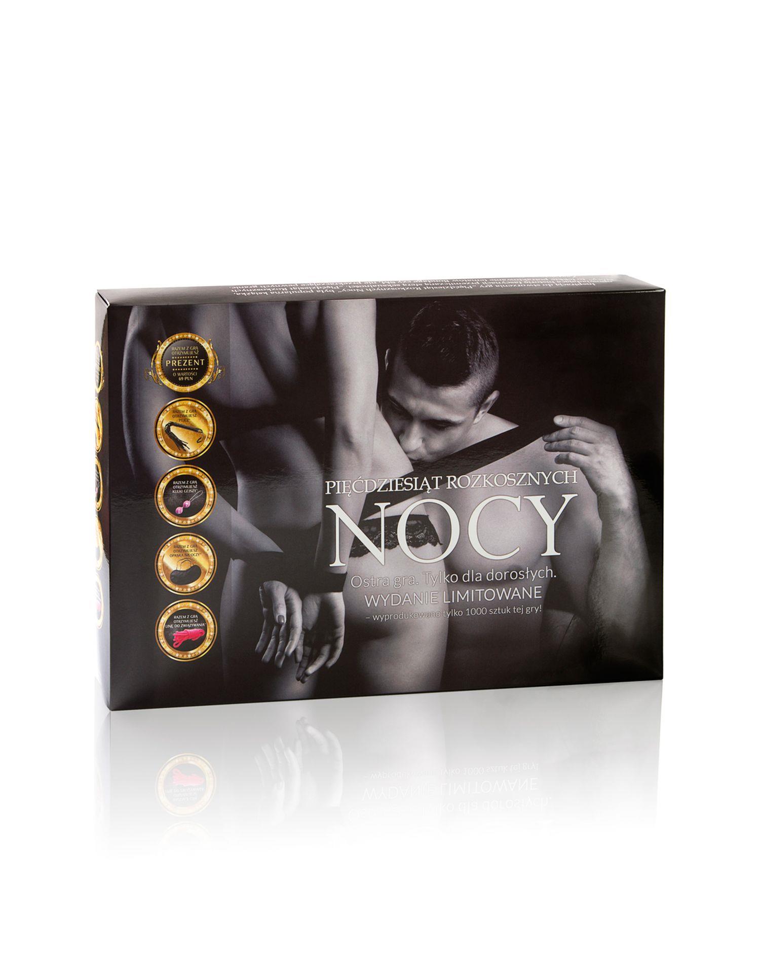 „Kiedy wszedł do sypialni, stałam jak sparaliżowana. Czułam w sobie mieszankę lęku i dzikiego pożądania na myśl o tym, co zaraz wydarzy się między nami. Mały pejcz, który leżał na pościeli był zapowiedzią nowej przygody, ale także… Myśli zaczęły uciekać, kiedy poczułam, jak obejmuje moje dłonie i związuje zimną liną, zakłada opaskę na oczy… na swoich pośladkach czułam twardy dotyk jego męskości… czułam, że już jest gotowy, by wejść … ale to był dopiero początek naszej przygody…” Chcesz doświadczyć takich emocji? Chcecie razem wybrać się w erotyczną podróż do krainy Christiana? Pejcz, kulki gejszy, związane dłonie i stopy… pieszczoty z dużą szczyptą pikantności – to wszystko czeka na Was zamknięte w tym opakowaniu. Jeżeli zawsze chciałaś spróbować, ale nie wiedziałaś jak zacząć… Jeżeli zawsze liczyłeś na bardziej pikantny seks między Wami…kup „Pięćdziesiąt rozkosznych nocy” i doświadczaj nowych emocji w sypialni. To najbardziej pikantna gra w Polsce. Inspiracją do stworzenia gry „Pięćdziesiąt rozkosznych nocy” była popularna książka, opowiadająca historię fascynacji przemilczaną sferą seksualności. „Pięćdziesiąt rozkosznych nocy” to lekkie potraktowanie tematów Bondage czy SM, nie przekraczające pewnych granic. Zagrajcie w „Pięćdziesiąt rozkosznych nocy”, a dowiecie się dlaczego będzie to jedna z najlepiej sprzedających się polskich gier erotycznych najbliższych lat.