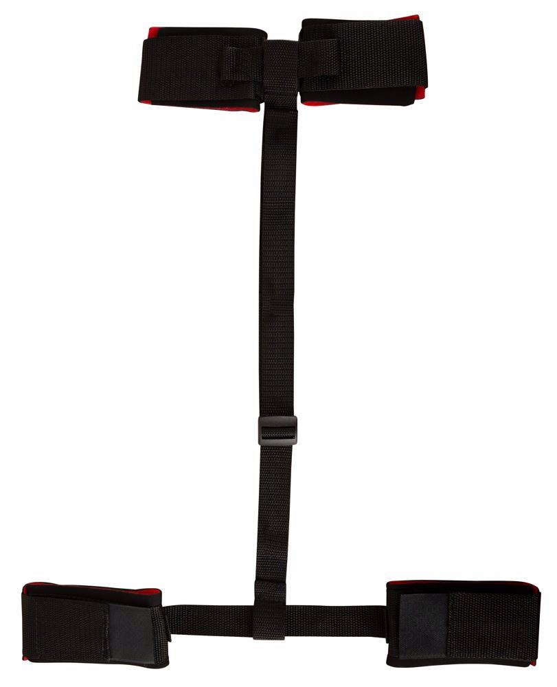 Ręczne i nożne mankiety na lince łączącej (długość regulowana do 80 cm). Wykonane z odpornego na rozdarcia włókna syntetycznego (100% poliamid). Kajdanki miękko wyściełane i indywidualnie regulowane dla HER i HIM za pomocą zapięć na rzepy.