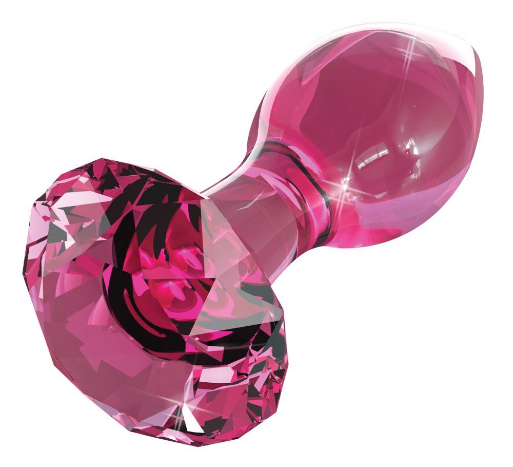 Różowy korek analny w kształcie stożka wykonany z ustnie dmuchanego szkła z zatyczką w kształcie kamienia szlachetnego o diamentowym wyglądzie. Bezzapachowe, antyalergiczne i bardzo higieniczne, ponieważ łatwe do czyszczenia, nawet w zmywarce. Wskazówka: Podgrzany w kąpieli wodnej lub schłodzony w lodówce, może jeszcze bardziej zwiększyć uczucie przyjemności. Przy dobrej opiece, artykuł będzie służył przez całe życie.