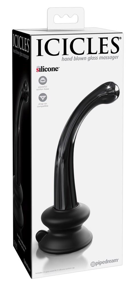 To ekskluzywne, ręcznie wykonane szklane dildo o zakrzywionej konstrukcji z wygięciem 63° jest idealne do ukierunkowanej stymulacji waginalnego punktu G i analnego punktu P. Dzięki (zdejmowanej) podstawie ssącej można go wygodnie i elastycznie prowadzić, a nawet używać bez użycia rąk – może być również włożony do strap-on (nie dołączony do zestawu). Samo dildo może być temperowane w gorącej lub zimnej wodzie, co pozwala na szczególnie ekscytujące chwile przyjemności. Szkło jest całkowicie bezszwowe, wykonane ręcznie i charakteryzuje się właściwościami antyalergicznymi.