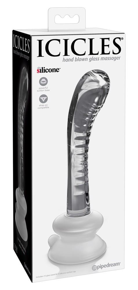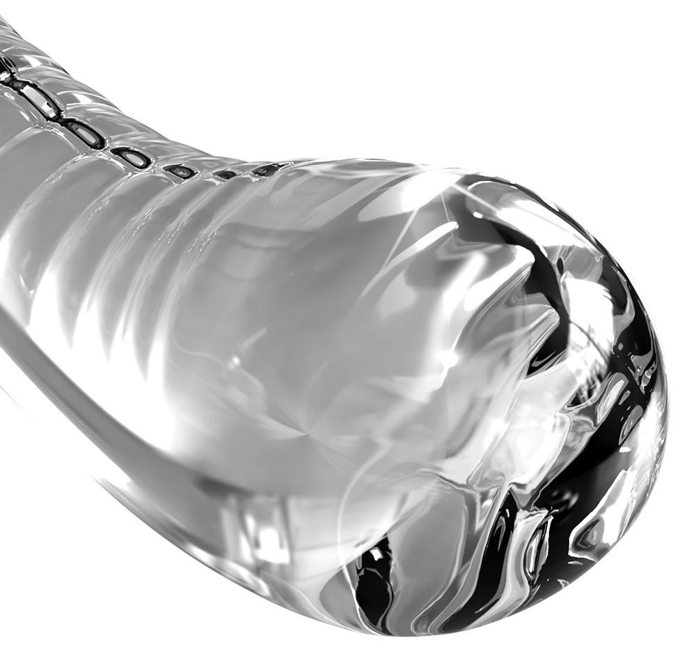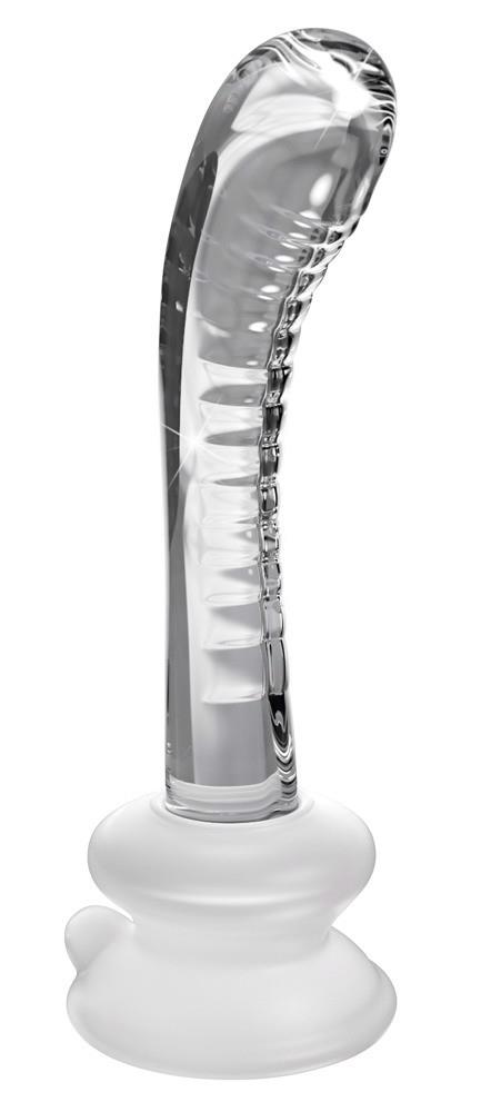 To ekskluzywne, ręcznie wykonane szklane dildo w kształcie zakrzywionej fali stymulacyjnej z wyraźną główką i krzywizną 40° jest idealne do intymnego masażu i ukierunkowanej stymulacji punktu G. Dzięki (zdejmowanej) podstawie ssącej można go wygodnie i elastycznie prowadzić, a nawet używać bez użycia rąk – może być również włożony do strap-on (nie dołączony do zestawu). Samo dildo może być temperowane w gorącej lub zimnej wodzie, co pozwala na szczególnie ekscytujące chwile przyjemności. Szkło jest całkowicie bezszwowe, wykonane ręcznie i charakteryzuje się właściwościami antyalergicznymi.
