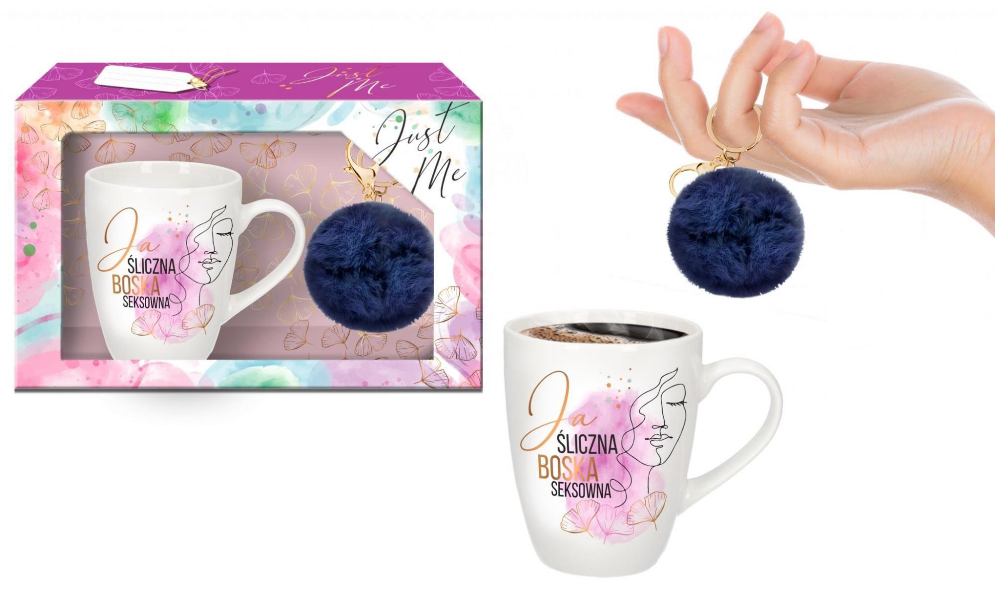23 sierpnia 2024JUST ME – zestaw kubek baryłka 300ml+pompon granatowy-Ja śliczna, boska, seksowna