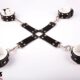 Skórzane kajdanki w kolorzebiało-czarnym zapinane na masywne klamry. Możliwość regulacji rozmiaru.