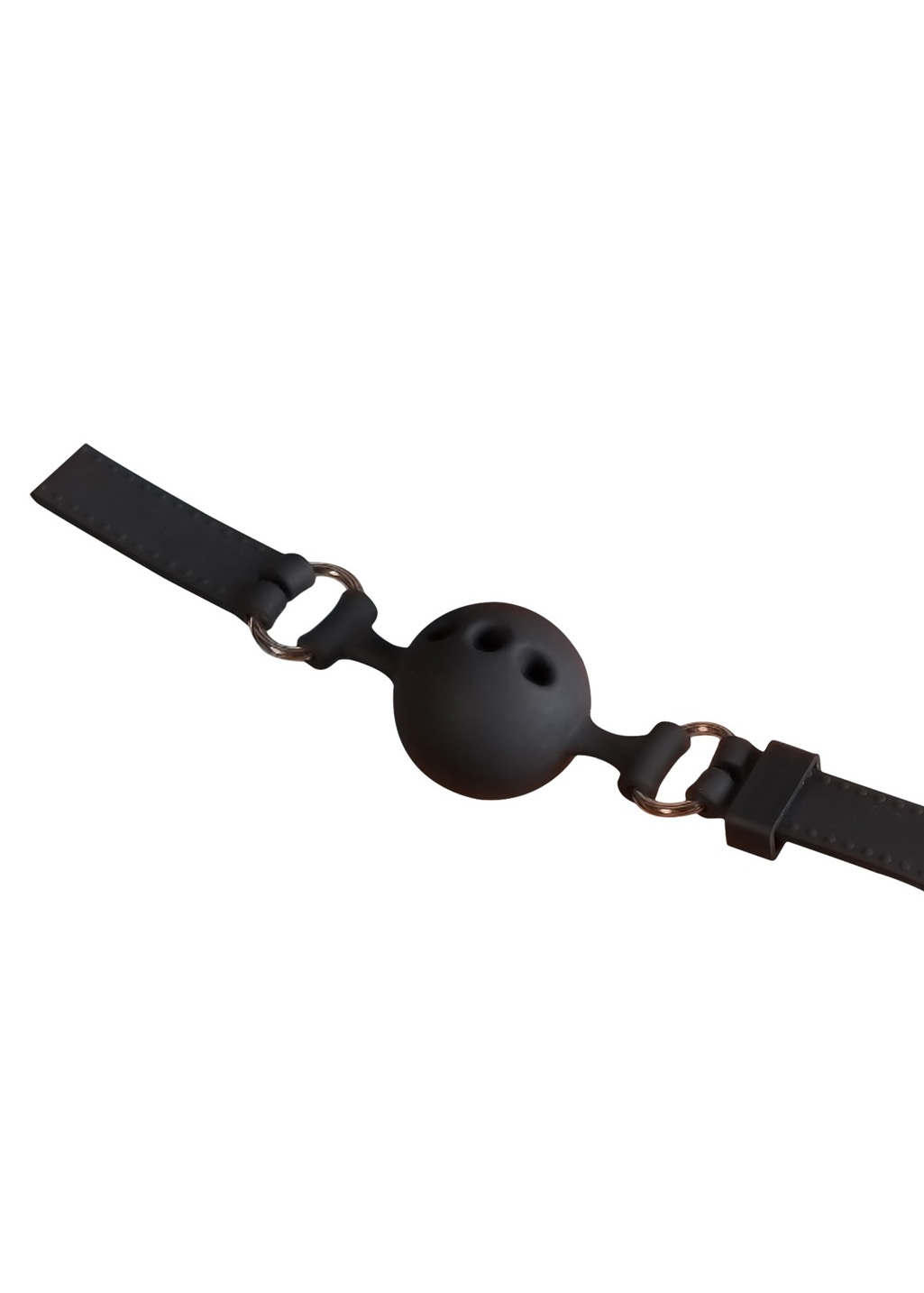 Czarny knebel z otworami do oddychania i regulowanym paskiem. Gag Ø 3,5 cm.