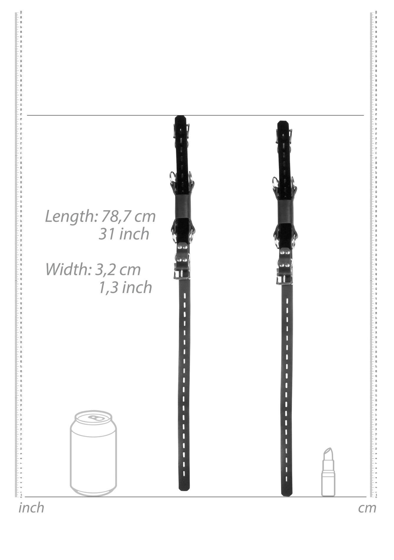 Dzięki temu zestawowi mankietów Kneeling Thigh Cuff Set możesz uzyskać dostęp do ciała i miejsc intymnych swojego kochanka, gdy zapniesz te mankiety wokół jego ud i kostek, bez wysiłku otwierając jego nogi do eksploracji. Połóż je na kolanach, aby uprawiać oszałamiający seks oralny lub na brzuchu, aby oddać się igraszkom. Zestaw zawiera cztery O-ringi do mocowania dodatkowych akcesoriów, takich jak pasy na nadgarstki i metalowe klamry, które można zablokować za pomocą kłódki, co pozwala na pełną kontrolę. Może być również używany jako system krępujący od nadgarstka do uda.