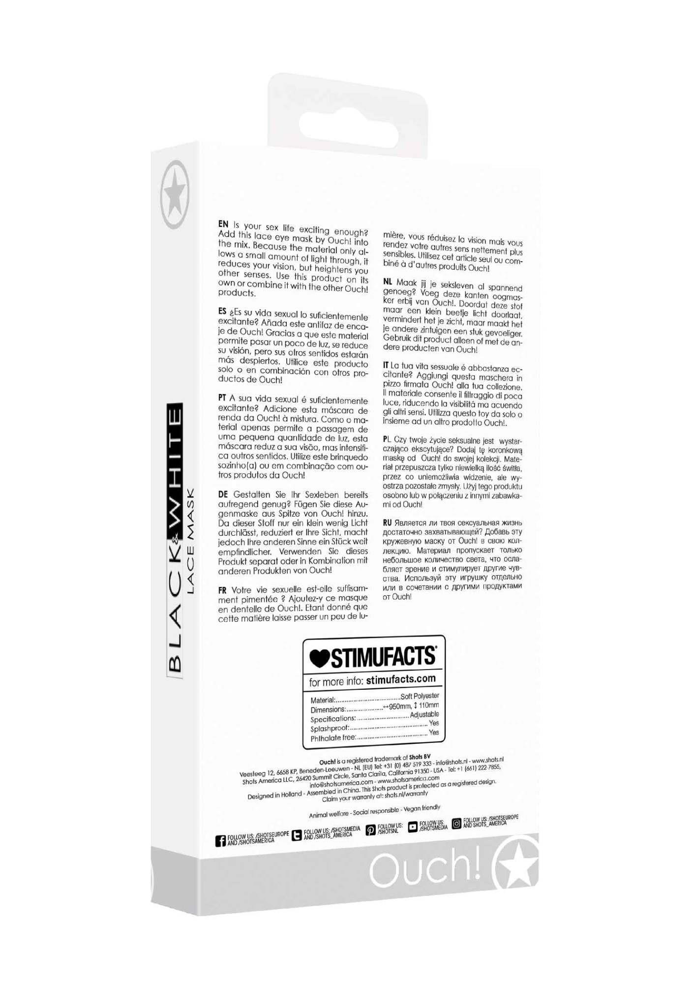Czy twoje życie seksualne jest wystarczająco ekscytujące? Dodaj tę koronkową maskę od Ouch! do swojej kolekcji. Materiał przepuszcza tylko niewielką ilość światła, przez co uniemożliwia widzenie, ale wyostrza pozostałe zmysły. Użyj tego produktu osobno lub w połączeniu z innymi zabawkami od Ouch!