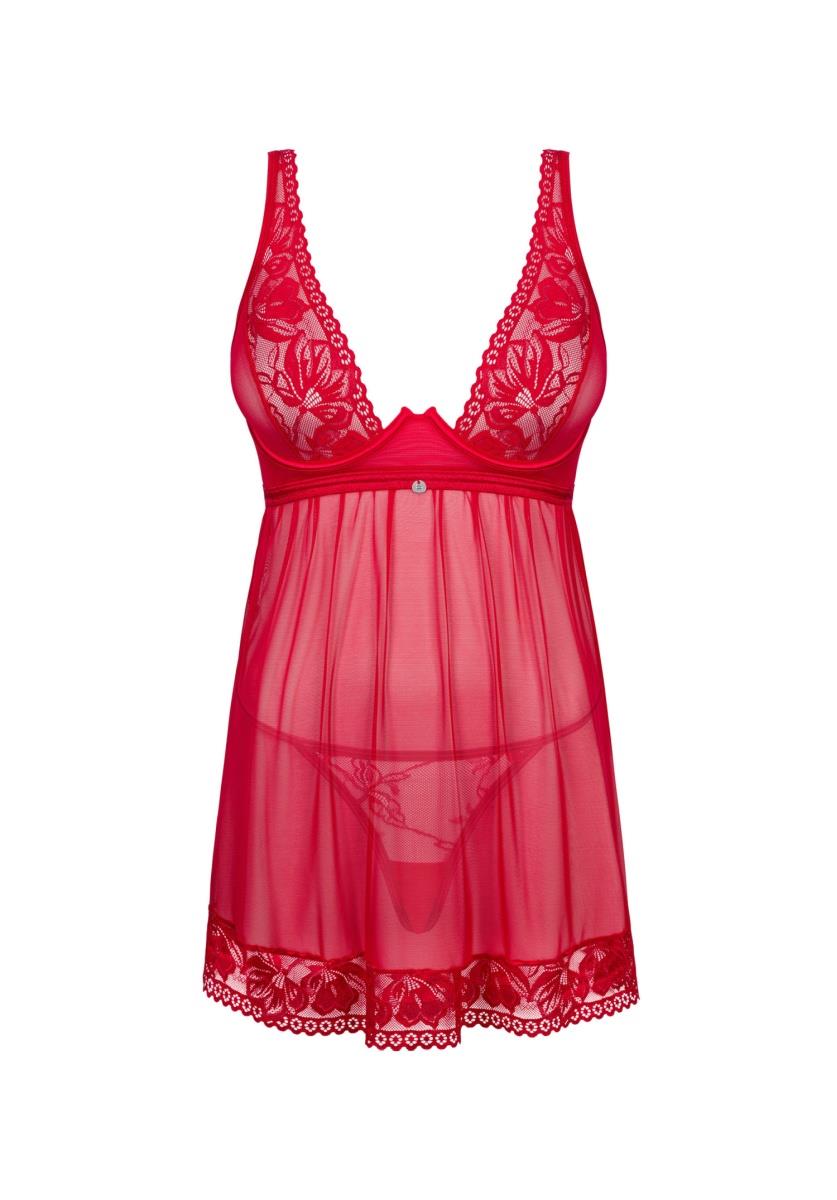 Szukasz kompletu bielizny, który rozpali zmysły? Babydoll i stringi Lacelove to przepis na wysoką temperaturę w sypialni. Spójrz tylko na ten prześwitujący materiał i koronkowe detale w kolorze intensywnej czerwieni! Gotowa na gorącą noc pełną namiętności?