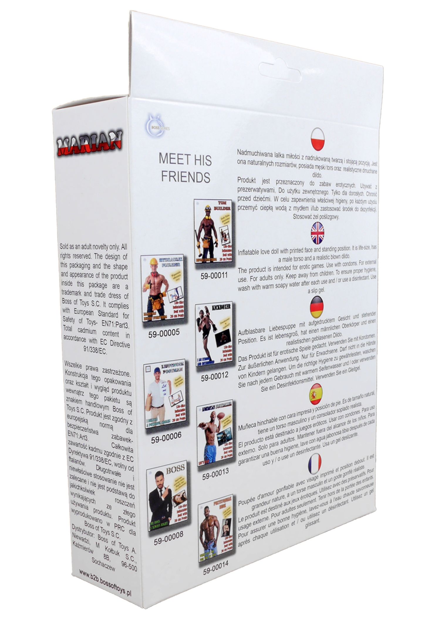 Nadmuchiwana lalka miłości z nadrukowaną twarzą i stojącą pozycją (160 cm). Jest ona naturalnych rozmiarów, posiada męski tors,