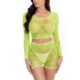 Net top and net shorts. The crop top has long sleeves. Embroidery of hemp leaves. Handwash.A highly-seductive duo. The risqué Leaf it To Me Short Set features a long-sleeved crop top and shorts combo. What makes things truly sultry is the sheer net material that doesn’t leave much to the imagination. Highlighted by a unique pot leaf design, let your personality shine on those occasions where flowers and hearts just won’t do.You can wear it on its own and give your partner a visual treat, or tease them by pairing it with a bra and panties of your choice. However you choose to rock this set, you’ll look blazing hot!Comfortable and risqué net materialCheeky pot leaf designLong-sleeved crop top and shorts comboClick here for the Pink Lipstick Size Chart Fabric care Hand wash in cold water Do not dry clean Do not bleach Line dry Do not iron