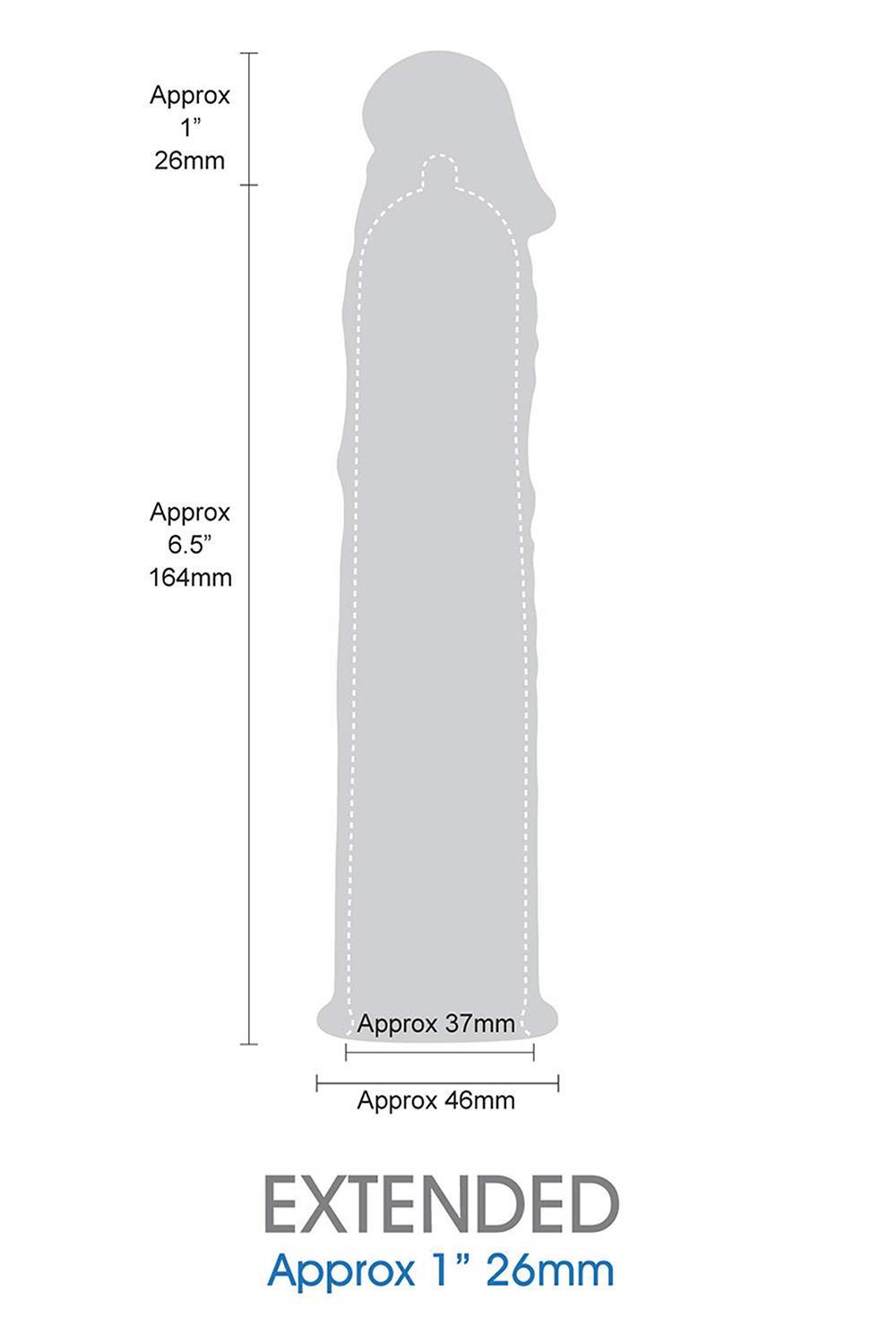 7.5 inch penis sleeve will fit any size vibe. Premium elastic material. Extended around 1inch. Warning this product is not a condom.