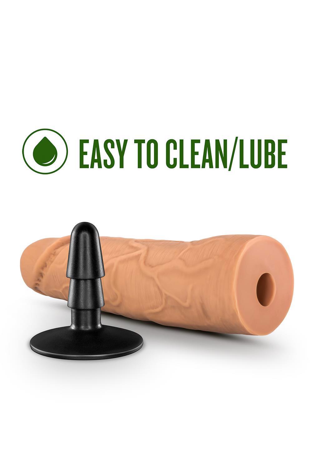 LOCK ON HEXANITE 7.5 INCH DILDO WITH SUCTION CUP ADAPTER MOCHA