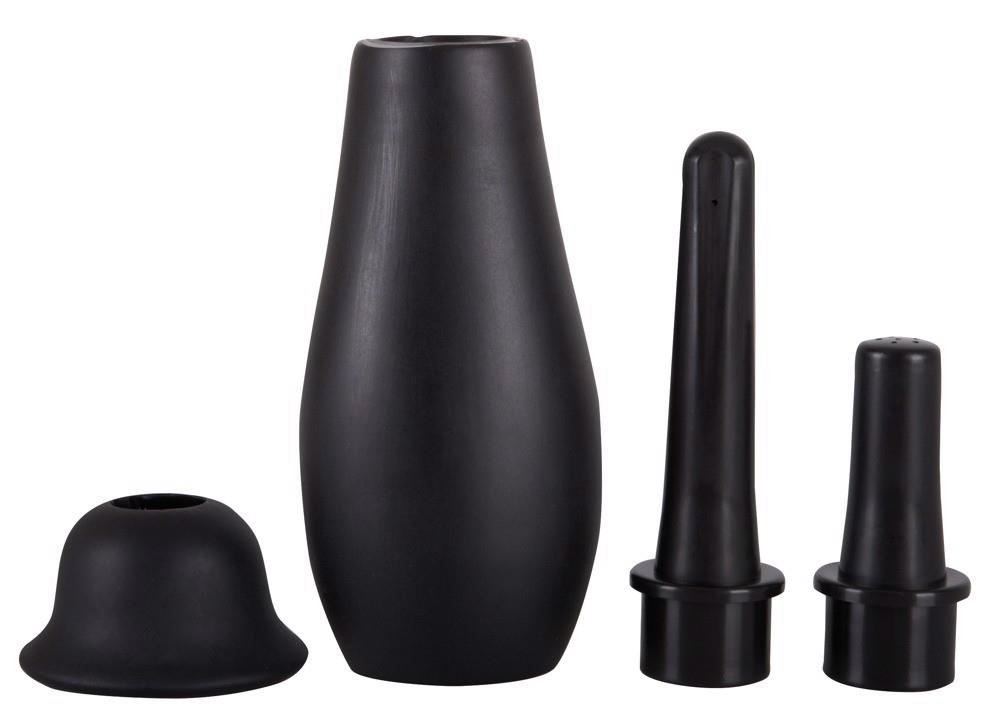 Wystarczy napełnić kulę z pompką (10,5 cm, średnica 5 cm, pojemność 100 ml) płynem i w zależności od nastroju (seksualnego) cieszyć się przyjemnymi, pikantnymi chwilami za pomocą przystawki prysznicowej (4 cm) lub przystawki squirt (7 cm). Do użytku analnego i waginalnego. PVC, ABS.
