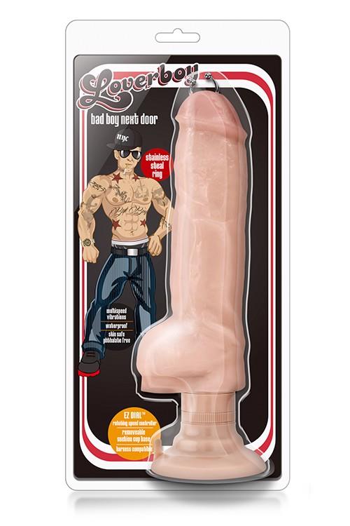 Meet the Bad Boy Next Door. The man you have been fantasizing about has been brought to life with This Bad Boy. He is pierced. He is huge. He vibrates! Stick him onto any smooth flat surface and ride him hard. He comes equipped with the multispeed vibrations that are conveniently located right above the suction cup. No more cumbersome wires! He is also harness compatible. Care and cleaning: wash with soap and water before and after use. Be sure to pat dry with a clean dry towel and allow to completely air dry paying special attention to the pierced area. It is suggested that you remove the stainless steel ring and swab out the pierced area with a cotton swab to ensure piercing is completely dry. Then carefully reinstall the ring after cleaning.Power – Deep rumbly vibrations. Multiple adjustable speed settings conveniently controlled with EZ Dial Speed Controller.Perfect – Sized perfectly for the big toy loverVersatile – The suction cup base will stick to almost any smooth flat non-porous surface and is harness compatiblePeace of mind – Made of body safe non-porous PVC. Contains no synthetic fragrance, phthalate, paraffins or latex. It meets or exceeds international product safety standards.Length 13 inch length/ 33 cmInsertable length 9.5 inch / 24,1 cmWidth 2.5 inch / 6,3 cm