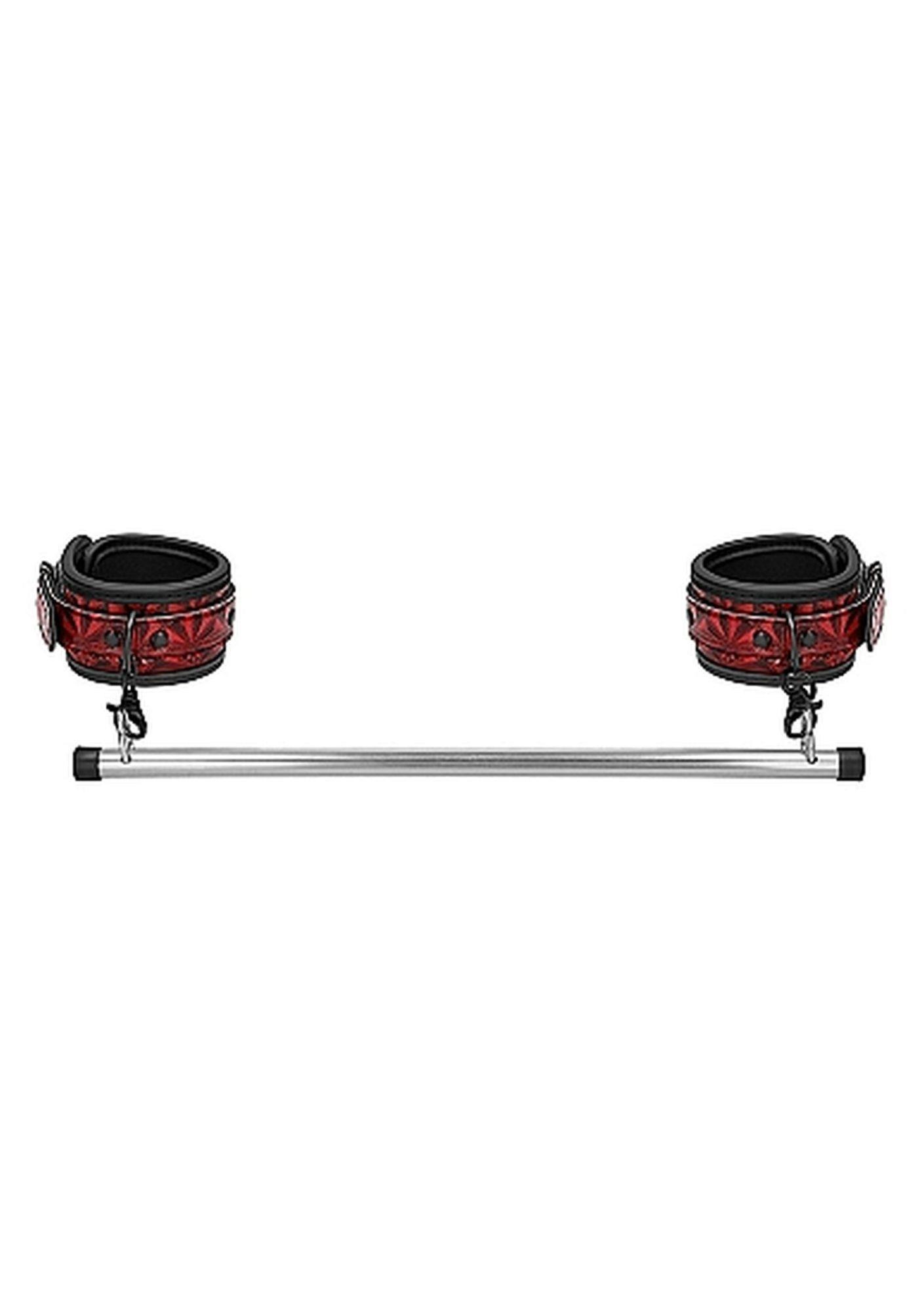 Uchyl nieco miłości oraz rozchyl kończyny kochanka, zapewniając sobie nieograniczony dostęp do najbardziej intymnych obszarów podczas erotycznej zabawy! Ta wytrzymała metalowa rozpórka posiada 2 mankiety na kostki, które gwarantują pełny dostęp i niegrzeczną zabawę. Czarne mankiety wykonano z wygodnej pianki neoprenowej i opatentowanego tworzywa winylowego z modnym diamentowym wzorem. Metalowa rozpórka OUCH! ma 40,3 cm długości i 1,5 cm średnicy. Mankiety na kostki mierzą 39 cm długości i 5,5 cm średnicy. Posiadają też zapięcie i wystarczającą liczbę oczek, aby odpowiednio dopasować zapięcie.
