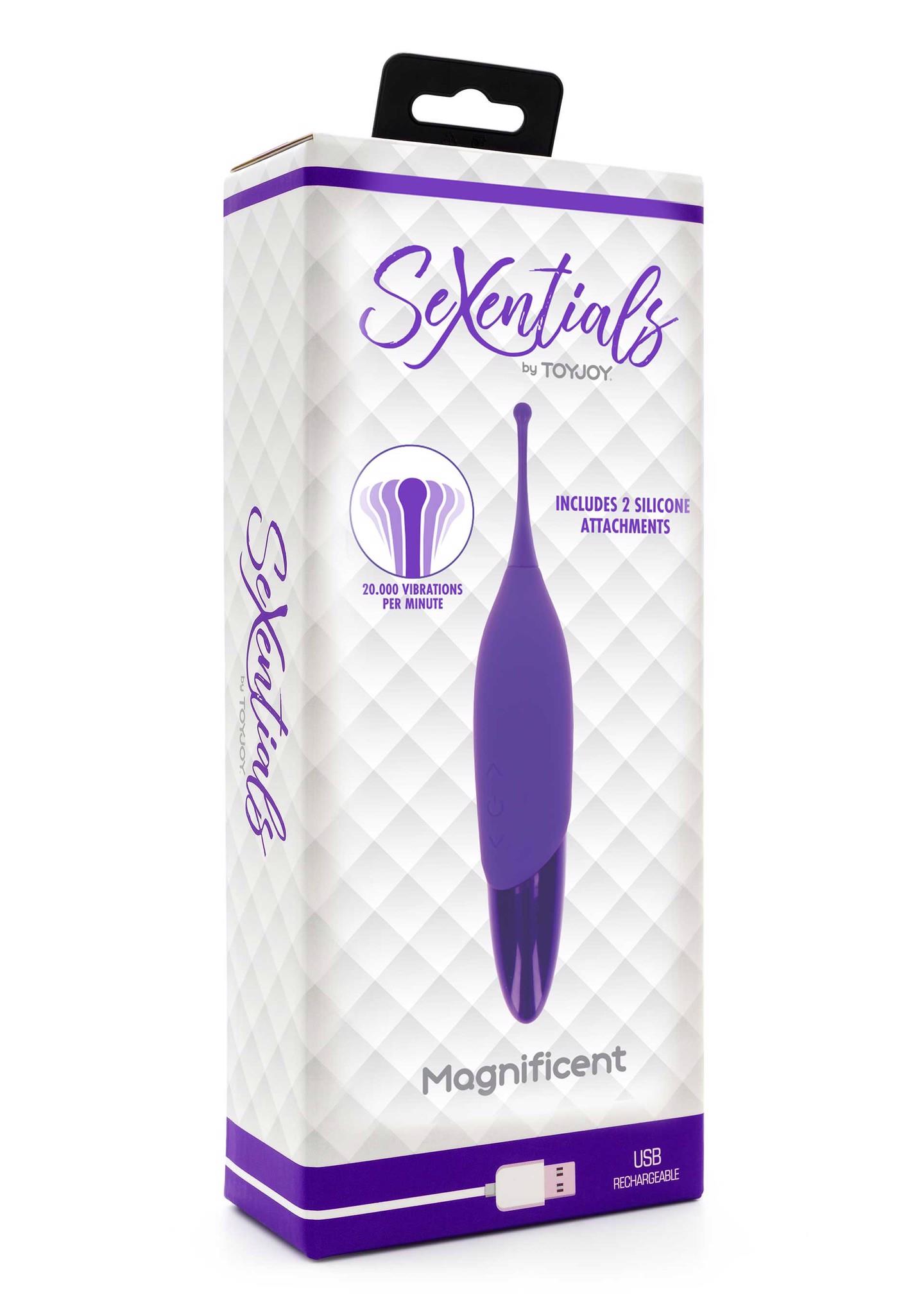 Stymulator Magnificent to innowacyjny, nowy must-have w kolekcji SeXentials by TOYJOY. Ten najnowocześniejszy symulator może pochwalić się do 20 000 wibracji na minutę i zawiera dwa przystawki, co pozwala na nieskończone scenariusze intymnej zabawy. Ciesz się mini-masażem stref erogennych za pomocą bulwiastej nasadki do masażu, poddaj się precyzyjnej stymulacji łechtaczki za pomocą dwustronnego łechtaczki lub pobudź zmysły, używając stymulatora jako niegrzecznego stymulatora kegla. Opcje są po prostu wspaniałe. Ten produkt premium z kolekcji SeXentials by TOYJOY jest ładowany przez USB, wykonany z najwyższej jakości silikonu i oferuje 6 funkcji pulsacji i 5 prędkości wibracji. Wspaniały stymulator sprawia, że innowacyjny projekt jest dostępny dla wszystkich konsumentów.