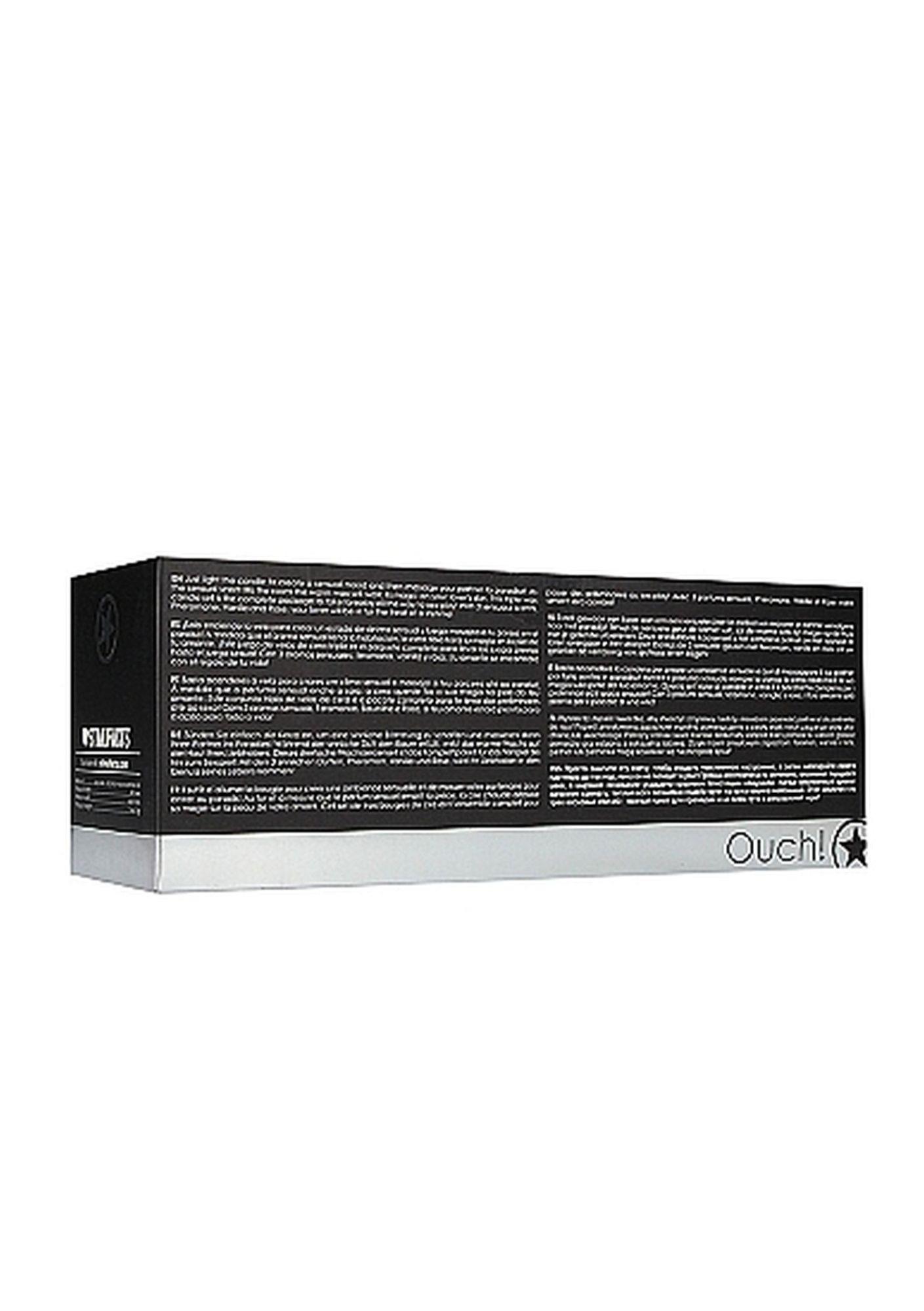 Wystarczy zapalić świeczkę, aby stworzyć zmysłowy nastrój i masażem przenieść partnera lub partnerkę do raju! Pozwól zmysłowemu zapachowi wypełnić pomieszczenie a ciepły wosk niech zaczaruje skórę ukochanej lub ukochanego. Potrójny zestaw świec stanowi doskonały komplet, który pomoże Ci zatrzeć granicę pomiędzy grą wstępną a seksualną zabawą. Dzięki trzem zmysłowym zapachom: feromon, wanilia i róża, partner lub partnerka mogą szykować się na przygodę życia! 3 świeczki są w czarnych kubeczkach, każda waży 60 gramów