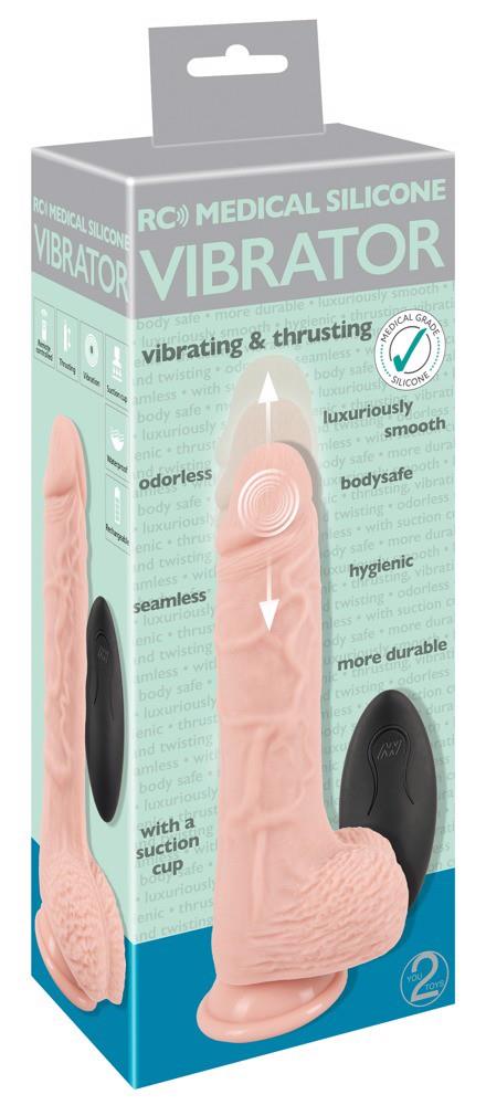 Obracający się wibrator wstrząsowy RC Medical Silicone Vibrator w naturze-identyczny wygląd penisa z silną bazą ssącą pod jądrami grippy, która przykleja się mocno i pewnie do każdej gładkiej powierzchni, dzięki czemu przyjemność bez użycia rąk jest możliwa.