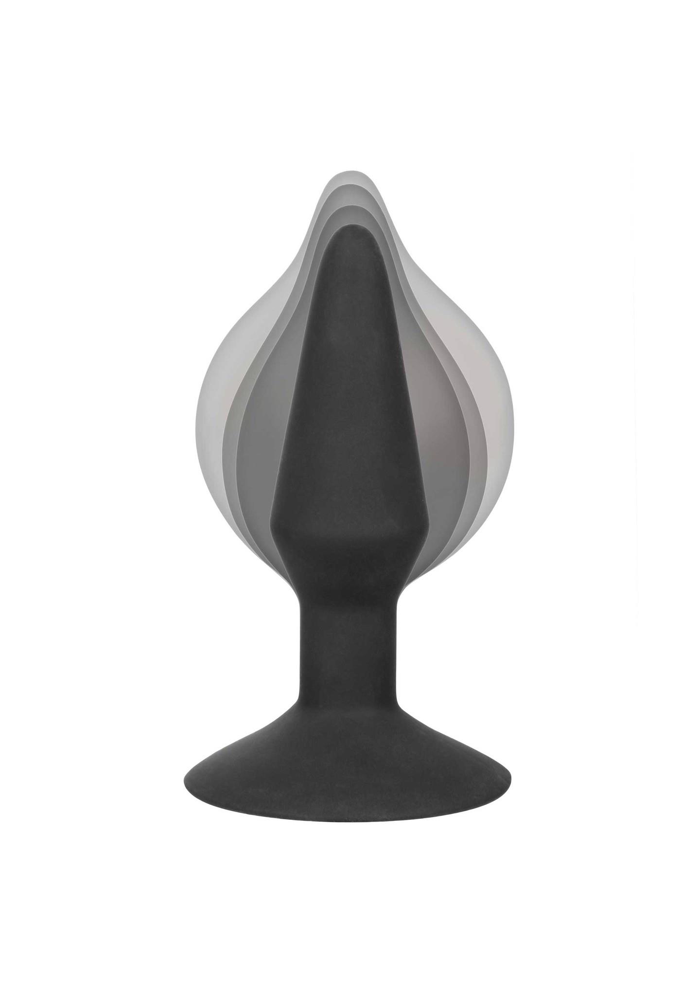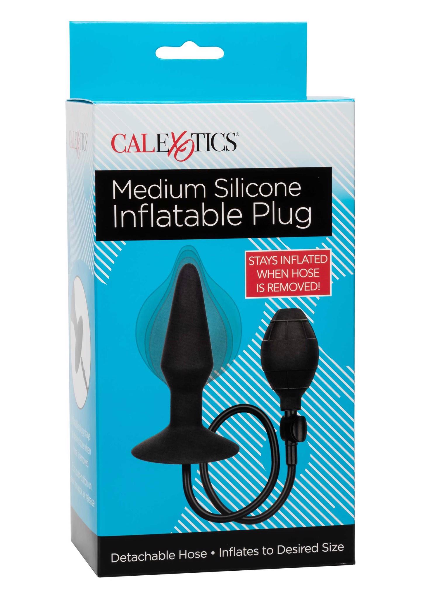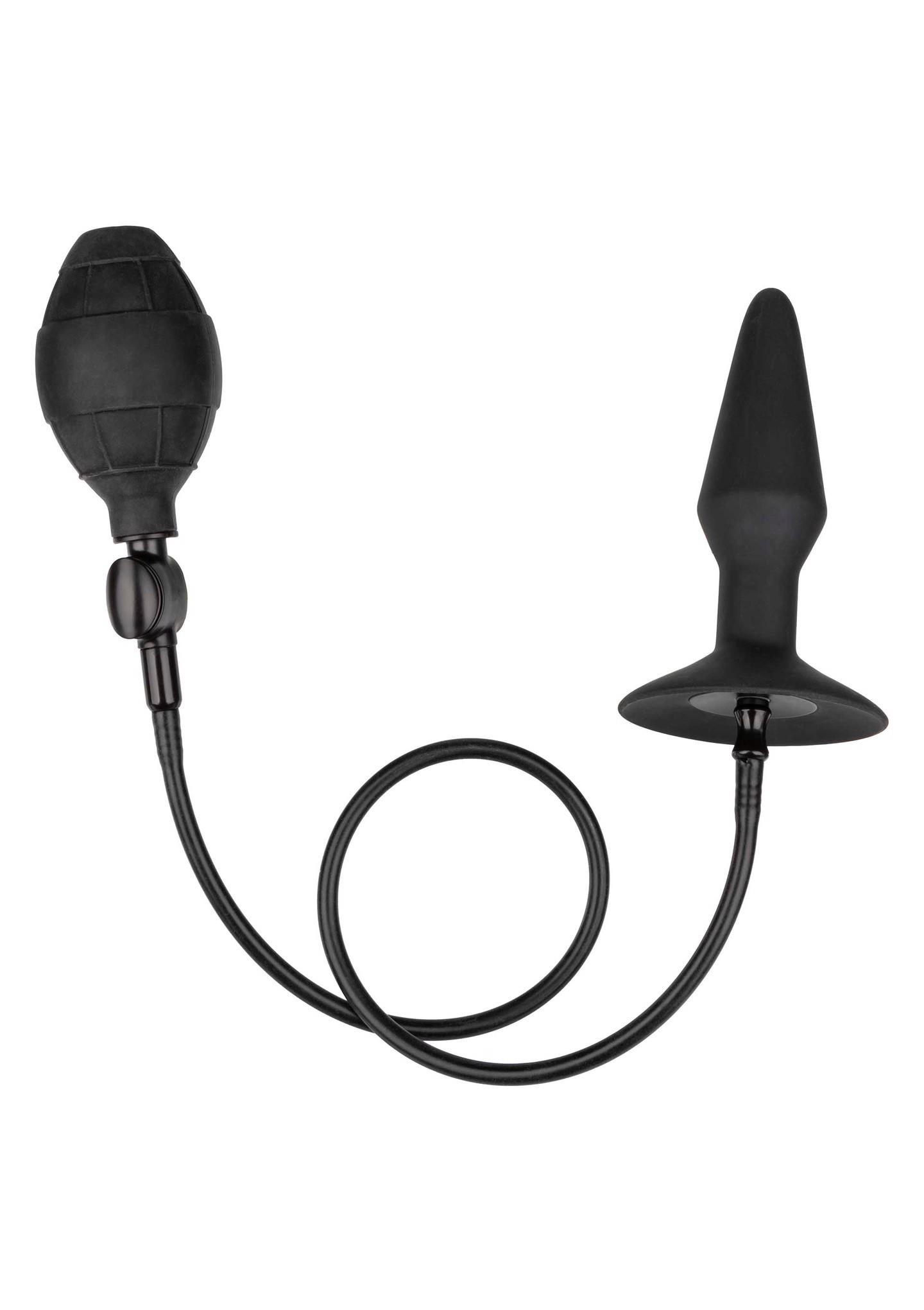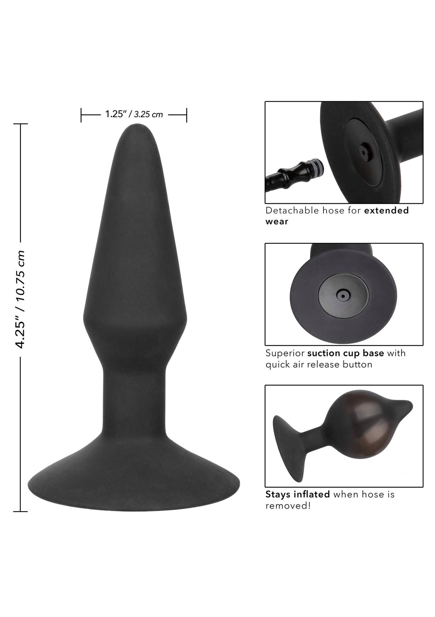 The CalExotics Medium Silicone Inflatable Plug is a one-of-a-kind anal probe with inflatable body, easy squeeze bulb and detachable hose. The wickedly thrilling probe even stays inflated when the hose is detached! To inflate your ecstasy, simply attach the hose and press the easy squeeze bulb. Once you’ve reached the desired size, the probe will hold its size even when the hose is removed and the quick air release button allows for gentle deflation and removal. To enjoy the exhilarating world of anal pleasure to the fullest, easy insertion and sensual stimulation is the key to success. The tapered silicone probe has the perfect amount of flex to bend and move naturally with your body.The powerful suction cup base is perfect for creative pleasure play, the probe can be used with or without a harness or mount onto a flat surface for a wickedly good time. The flexible probe, hose and bulb are made from a seamless silicone with ABS plastic release valves. The silicone plug has an overall size of 4.25” x 1.25” (10.75 cm x 3.25 cm)