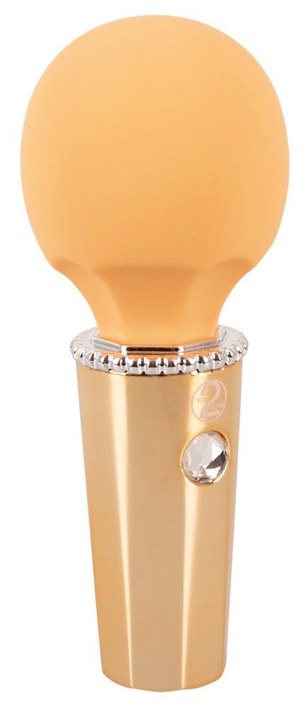 Small & compact massage wand Mini Wand Mango from You2Toys in a fruity, fresh sorbet colour and elegant metallic look with a sparkling glitter stone as a control button. With its flexible, silky soft massage head, it is suitable for both long massages and precise stimulation.