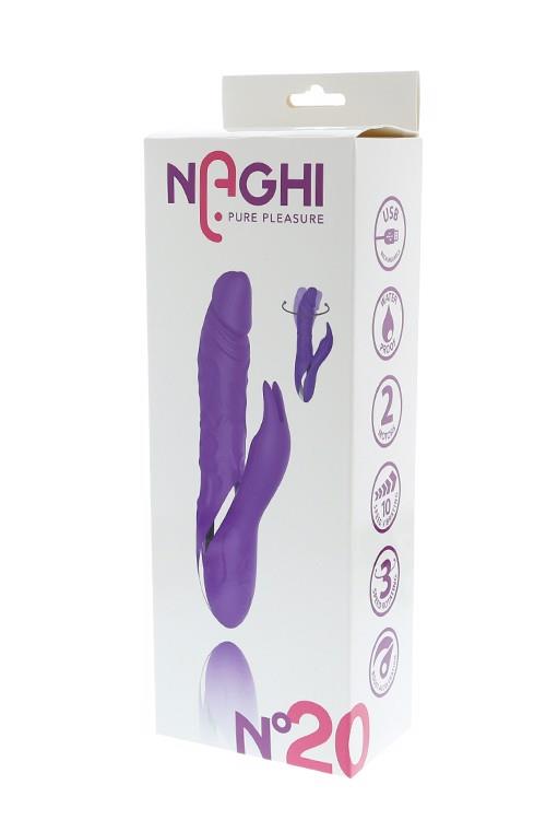 Naghi No 20 to podwójny wibrator z dwoma potężnymi silnikami. Jedna znajduje się na końcu trzonu, druga znajduje się w stymulatorze łechtaczki. Kształt stymulatora łechtaczki jest szczególnie dobry do stymulacji punktowej. Trzonek przypominający penisa z żołędziami ma lekko wygięty kształt do stymulacji pochwy i punktu G. No 20 jest pełen możliwości dzięki 10 prędkościom wibracji, 3 prędkościom obrotów i funkcji zwiększania przyspieszenia.