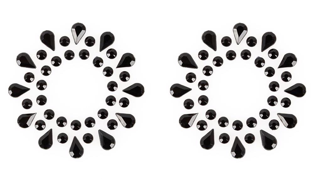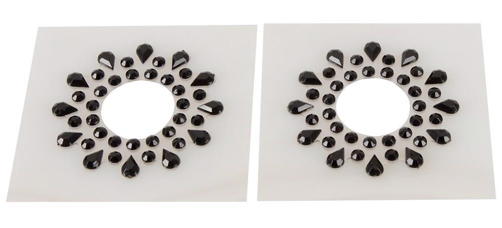 10 x set of 2 nipple stickers with black iridescent gemstones, recess in the centre for the nipple. Ă 1.5 cm each.