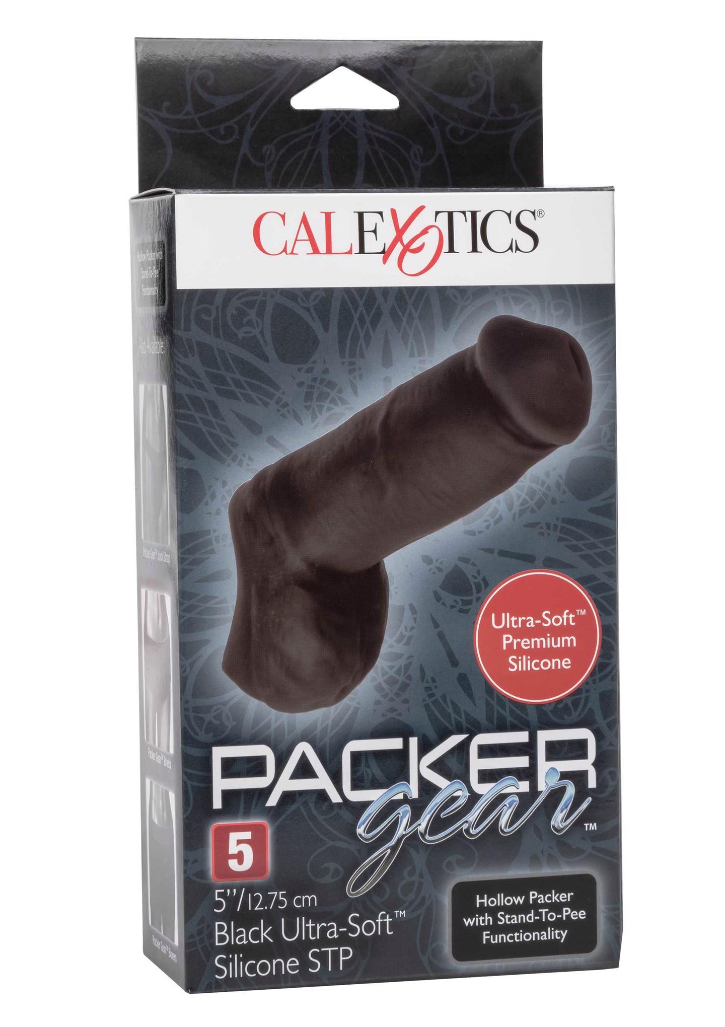 The Packer Gear 5-Inch Ultra-Soft Silicone STP is a unique packer designed with a hollow shaft and wide opening for FTM Stand-to-pee functionality. Designed with function and comfort in mind, the sculpted packer fits easily into your favorite harness and premium Ultra-Soft silicone flexes with the body. The soft, pliable silicone, life-like feel and black skin tone make it the perfect probe for all-day wear and use.The hypoallergenic premium silicone is body safe, unscented and phthalate free to keep you most sensitive spots, happy and healthy. Before and after use, wash with soap and warm water and then spray with a Universal Toy Cleaner.