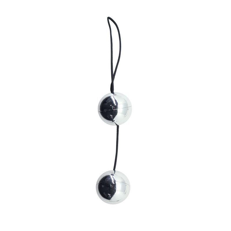 Duet kuleczek dopochwowych z ABS, z wewnętrzną metalową kulą. Średnica 3,5 cm, kolor srebrny i bez ftalanów.