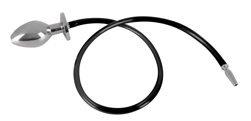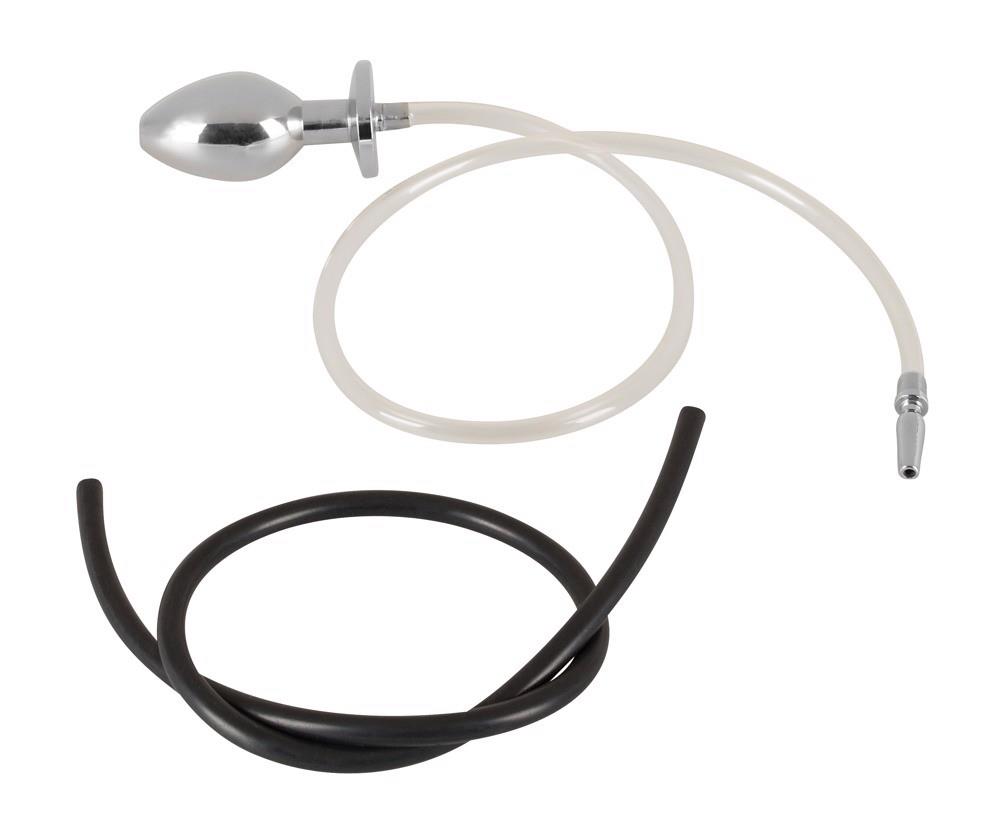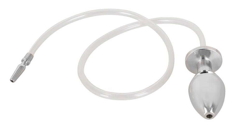 Pusta, ciężka wtyczka analna jest podłączona do otwartej wtyczki penisa za pomocą rurki. Korek analny: długość całkowita 7,8 cm, średnica max. 3,7 cm, 374 g ciężki; korek penisa: 3,3 cm, średnica max. 0,9 cm; długość rurki 62 cm. Łącznie z wymienną rurką w kolorze czarnym.