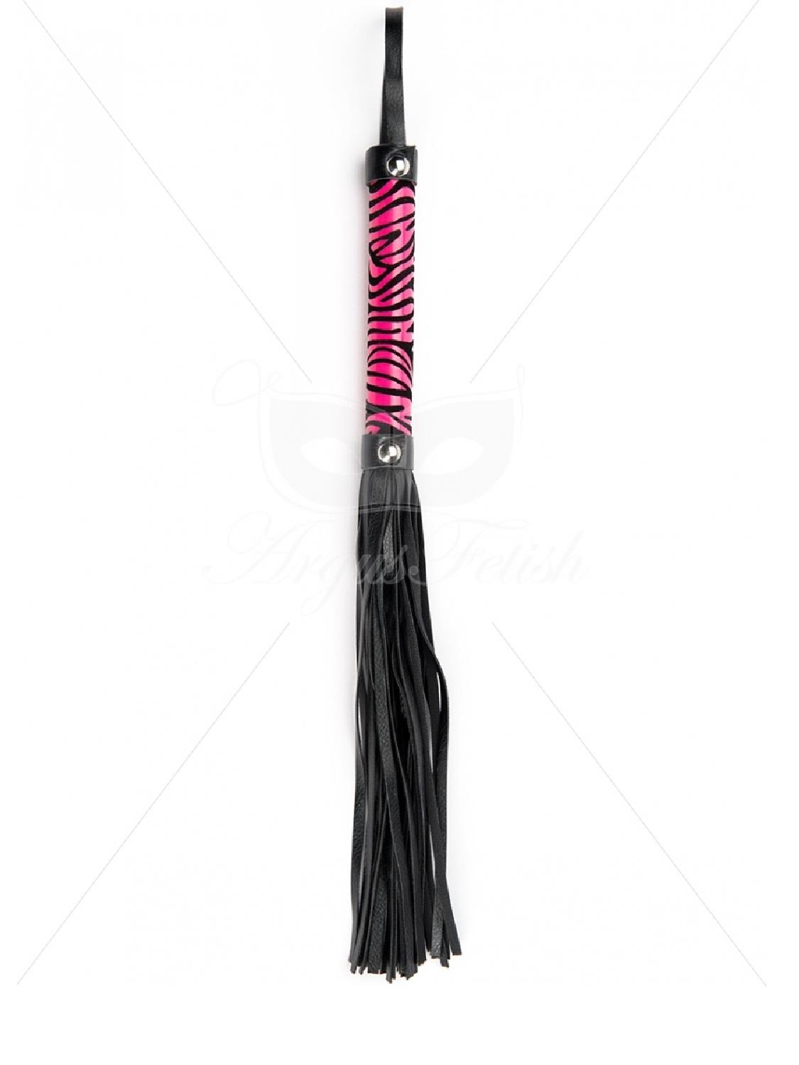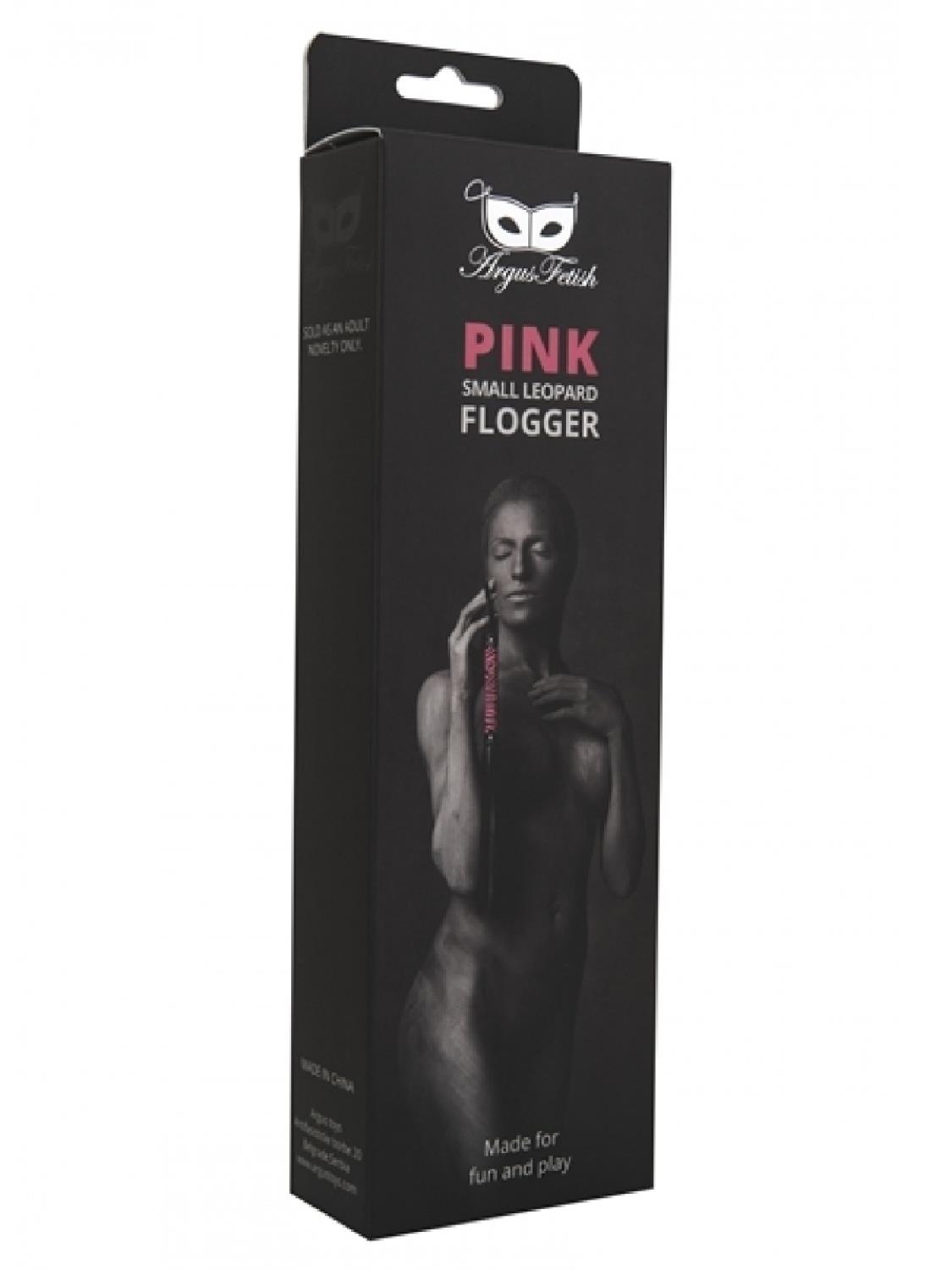 Klasyczny flogger wykonany ze skóry PU, drewna i bezniklowego metalu z różowym skrętem w lamparci wzór. Rączka jest zaprojektowana dla idealnego chwytu i jest bardzo wytrzymała. Czarny nadruk na rączce jest pluszowy w dotyku, natomiast różowa część jest błyszcząca. Na górze ma skórzany pierścień do przechowywania i wyświetlania celów. Średnica pudełka to 25x8x4 cm.