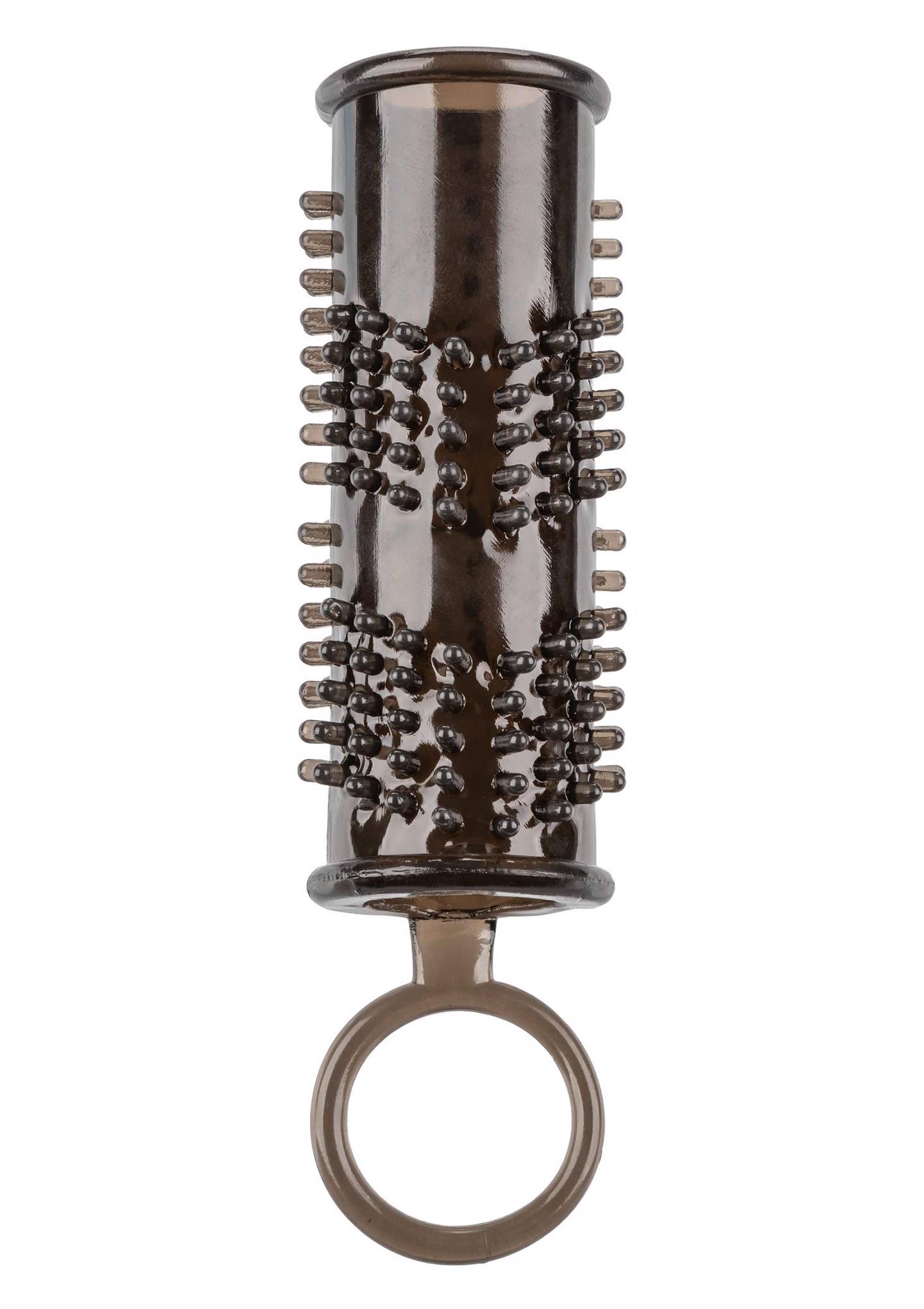The Pleasure Enhancer is a super tight, open-end extension sleeve with a sensually nubbed shaft. The super sized enhancer wraps tight around your pleasure tool to increase girth, length and pleasure. While you thrill your lover with increased girth and stimulating ticklers, the fulfilling enhancer’s powerful erection support and open end design results in explosive results for both of you. The erotic enhancer sleeve’s ultra stretchy material and spacious chamber is made to fit even the biggest man. The textured chamber and built-in scrotum strap provide increase stimulation and powerful support. Wrap your pleasure tool in this super stretchy sleeve to easily increase stamina, stimulation and orgasmic pleasure. The flexible enhancer is made from a hygienically superior TPE. This body safe material is unscented and phthalate free to keep your most sensitive spots happy and healthy.