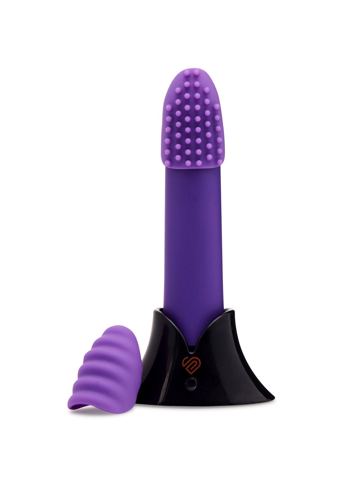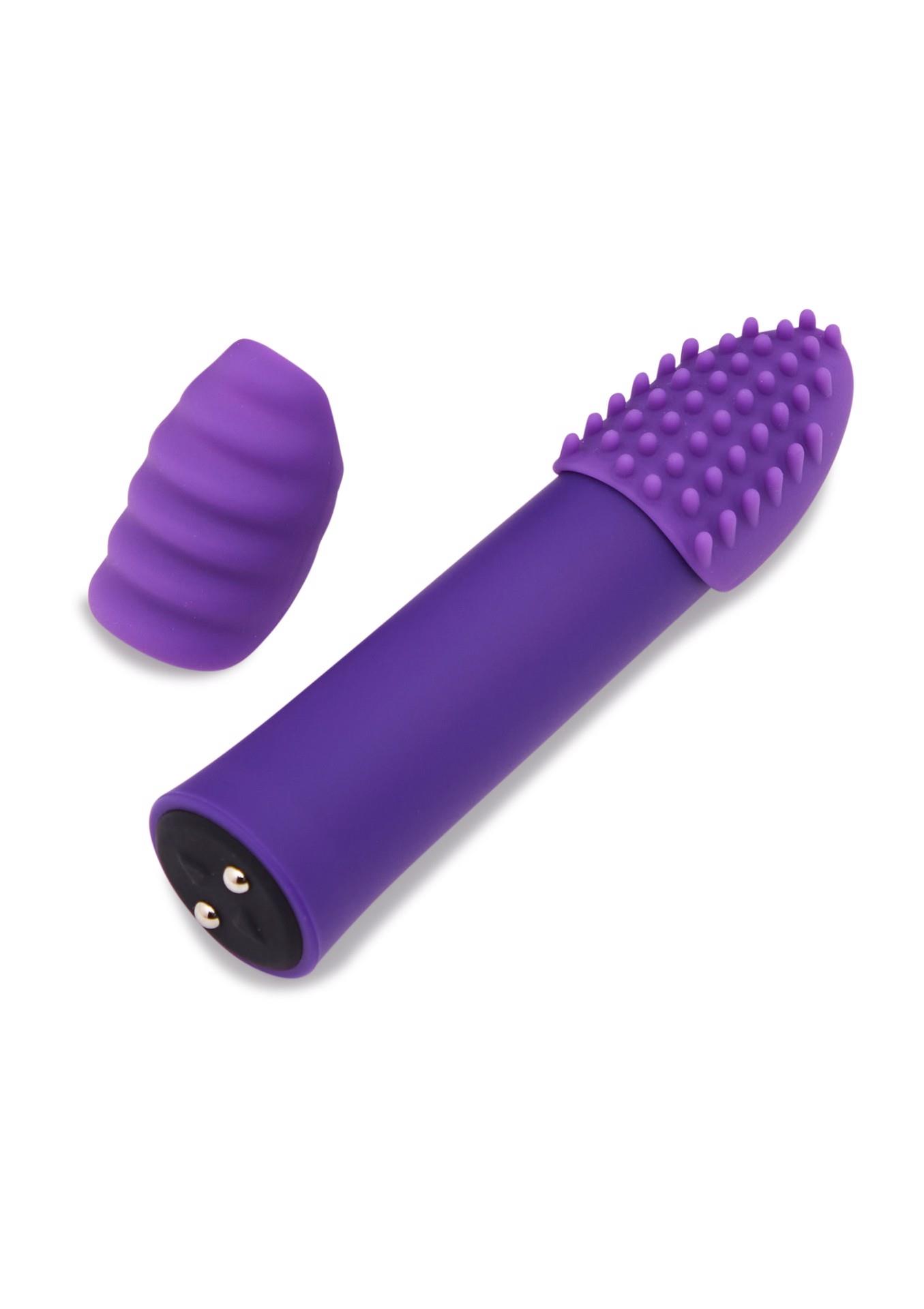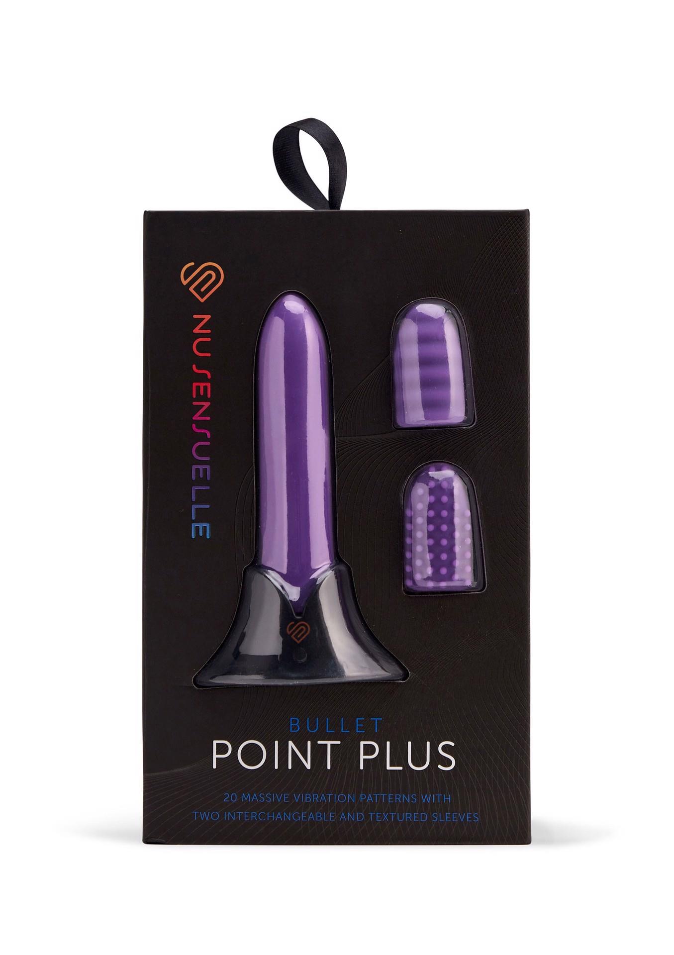 Make some room in your bedside drawer because your favorite bullet just got that much better. Meet the Point Plus: 20 heavenly vibrations, but with 40% more power than the Point. While the Point Plus has the same silky smooth, twice-dipped body-safe silicone shell, this bullet offers two interchangeable, textured silicone sleeves for additional customization. Mix and match the bullet's tapered tip with the removable nubbed or ridged sleeves for an out-of-body experience. Not to mention, the upgraded scrolling power controls make "you time" effortless, no matter the position.
