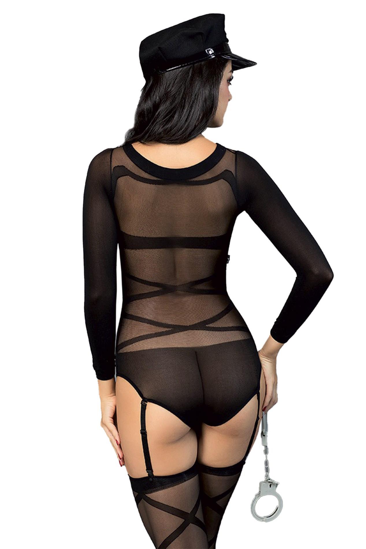 W zestawie znajdziesz również prawdziwą policyjną czapkę, funkcjonalne plastikowe kajdanki, odznakę policyjną oraz parę pończoch, abyś mogła wcielić się w rolę odważnej i uwodzicielskiej policjantki.