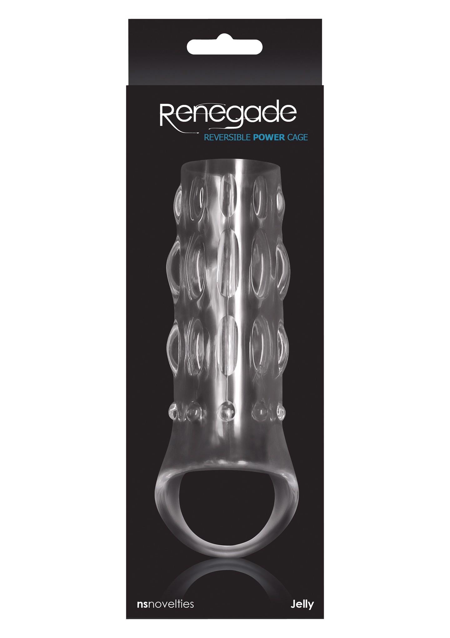 The Reversible Power Cage redefines versatility. Available in two colors, striking black or voyeur clear, this TPE power cage features large defined nubs to pleasure your partner during penetration. Flip the cage inside out and experience the textured surface yourself! TPE is stretchy, non-sticky, water-play friendly and enjoyable with lubricant. Easy to put on. Easy to clean. Add a little more easy to your intimate encounters.