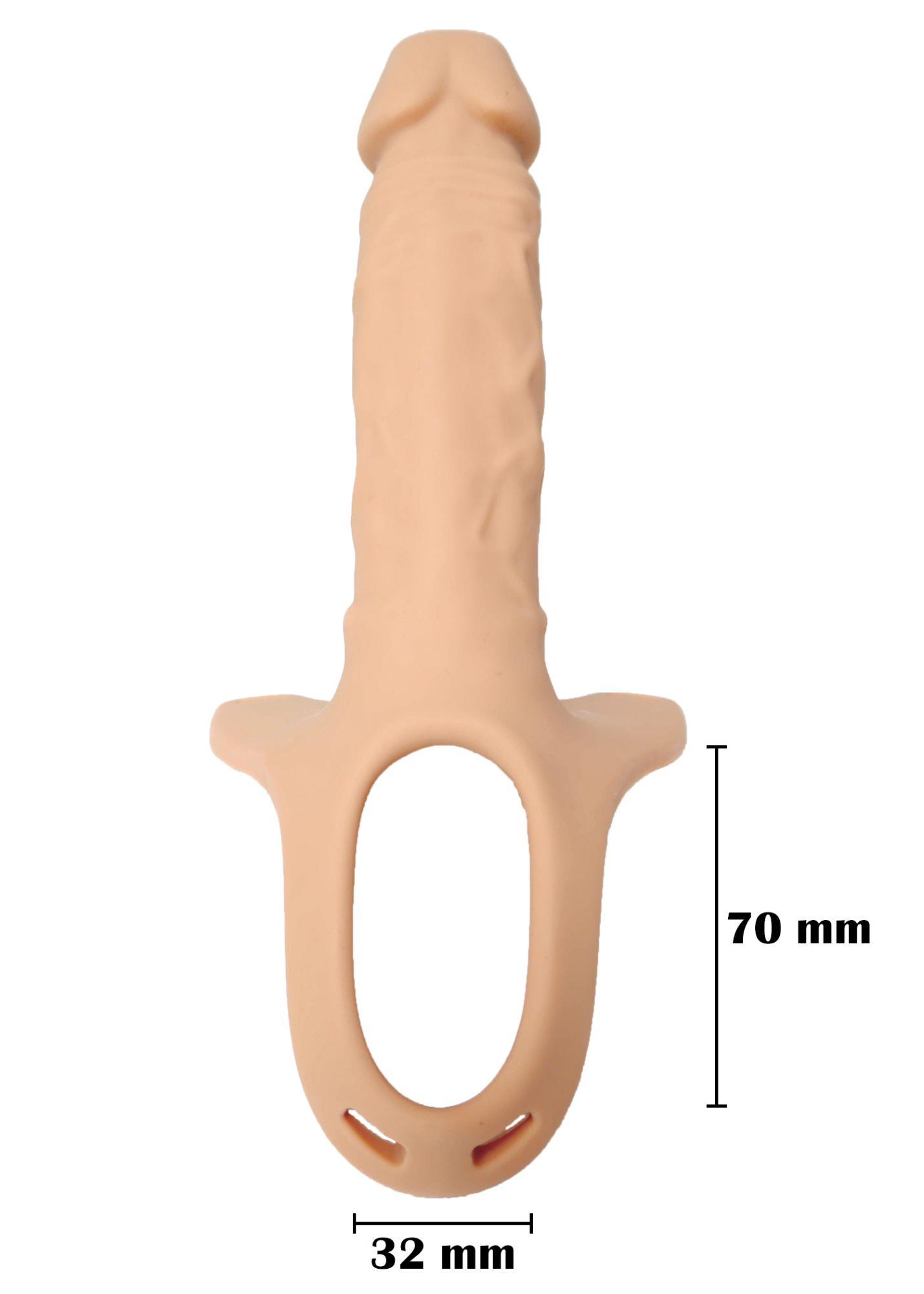 Doskonała silikonowa nakładka na penisa z pierścieniem na jądra. Wykonana z bardzo cenionego w erotyce materiału silikonowego. Przyjemny w dotyku i doskonały do utrzymania w nienagannej czystości.