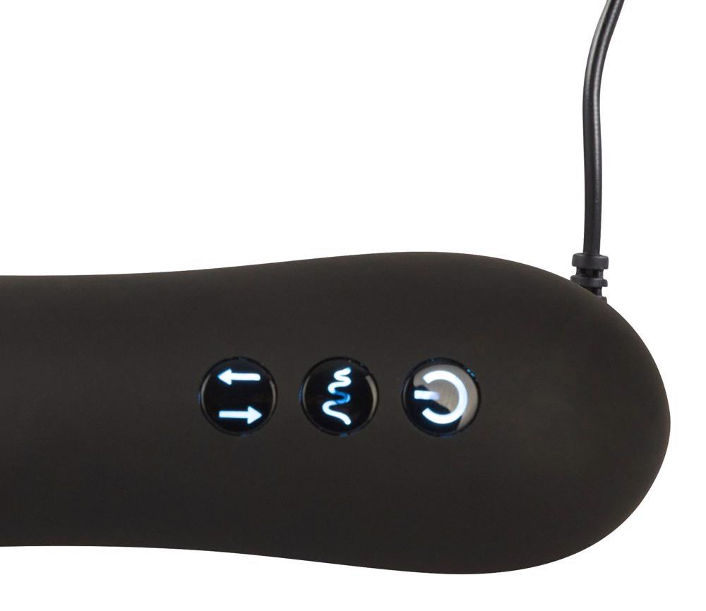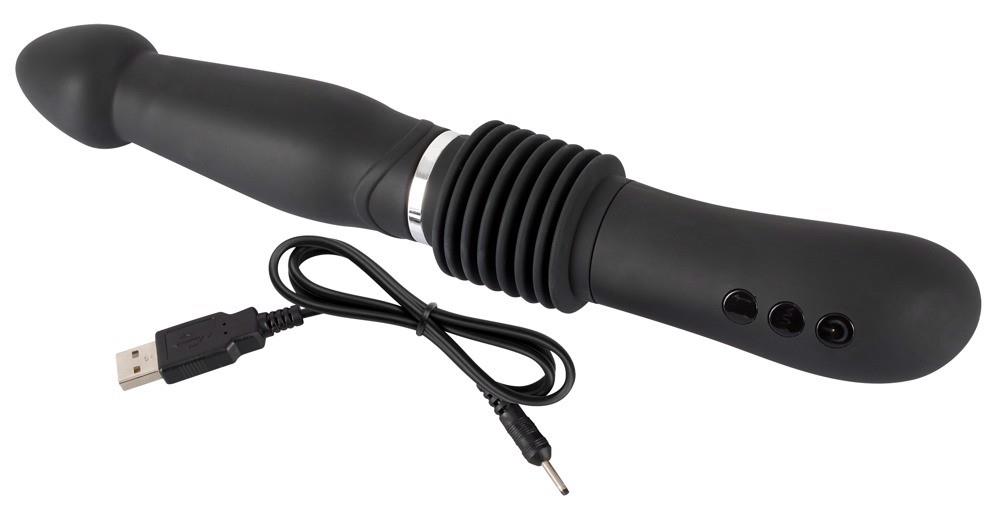 Ten wibrator analny ma wiele w zanadrzu, bo w bulwiastym wale, który zwęża się nieco poniżej stożkowatej końcówki, kryje się duża moc. Do dyspozycji jest aż 7 trybów wibracji – oraz funkcja “thrust” z 3 prędkościami, która wydłuża wibrator nawet o 6 cm – i tak w kółko. Funkcja wibracji i wstrząsów może być kontrolowana oddzielnie za pomocą jednego przycisku. Blokada przycisku zapewnia również, że wibrator jest dyskretnym towarzyszem podróży. Kabel USB do ładowania w zestawie.