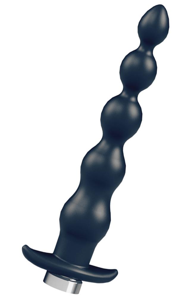 Velvety-soft anal beads with 10 whisper quiet vibration modes. Intensely stimulative beads shape and conical tip that makes insertion easier. Pleasantly flexible and with a wide foot for an ideal wearing comfort. Conveniently adjustable at the push of a button. The practical memory function repeats the vibration mode last used before turning off the device. Rechargeable with the included USB cable. Travel lock.