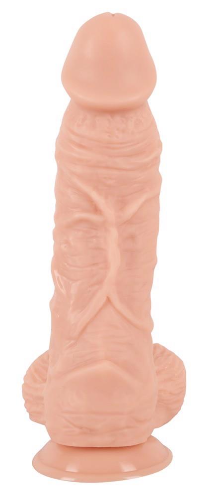 Bardzo duże i ciężkie naturalne dildo z nóżką ssącą i chwytliwymi jąderkami. Wybrzuszenia żołędzi i charakterystyczne żyłki tworzą powierzchnię intensywnie stymulującą. Dodatkowo, szeroki trzon zapewnia przyjemne uczucie wypełnienia. Inteligentny uniwersalny produkt na różne erotyczne okazje.
