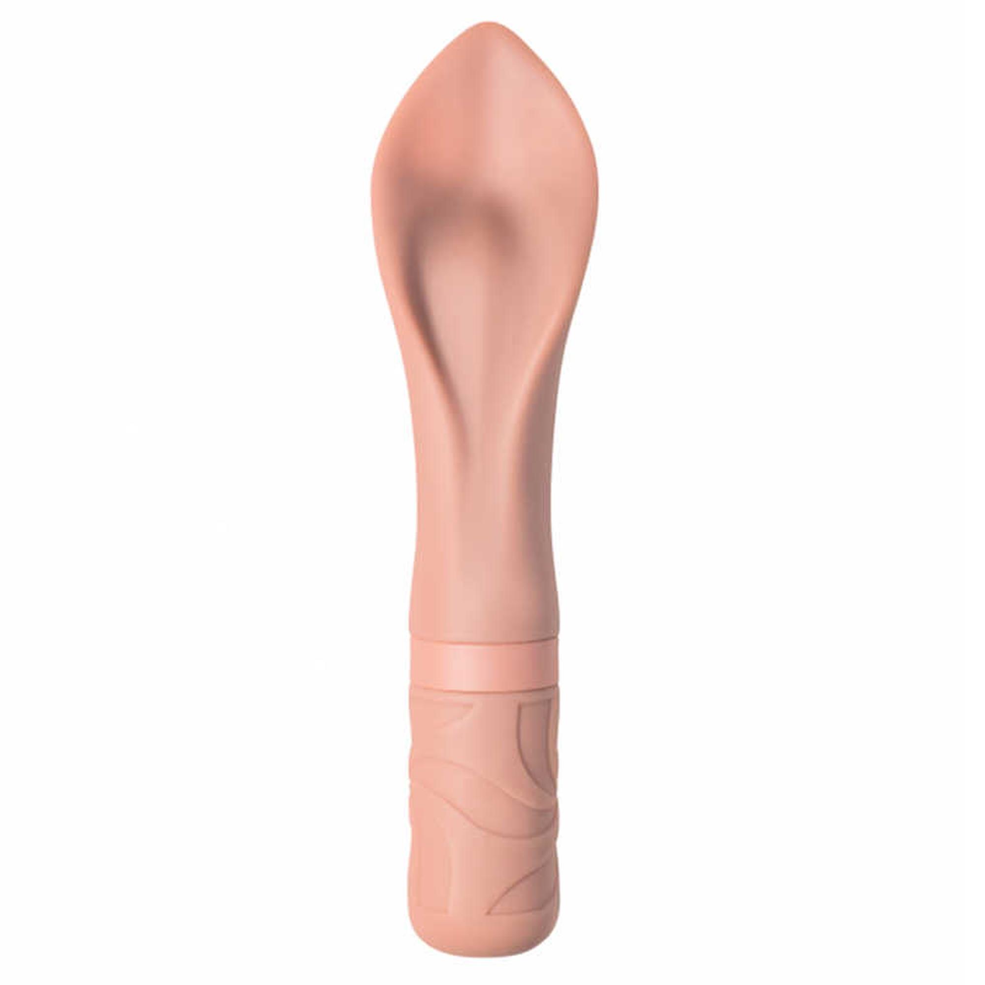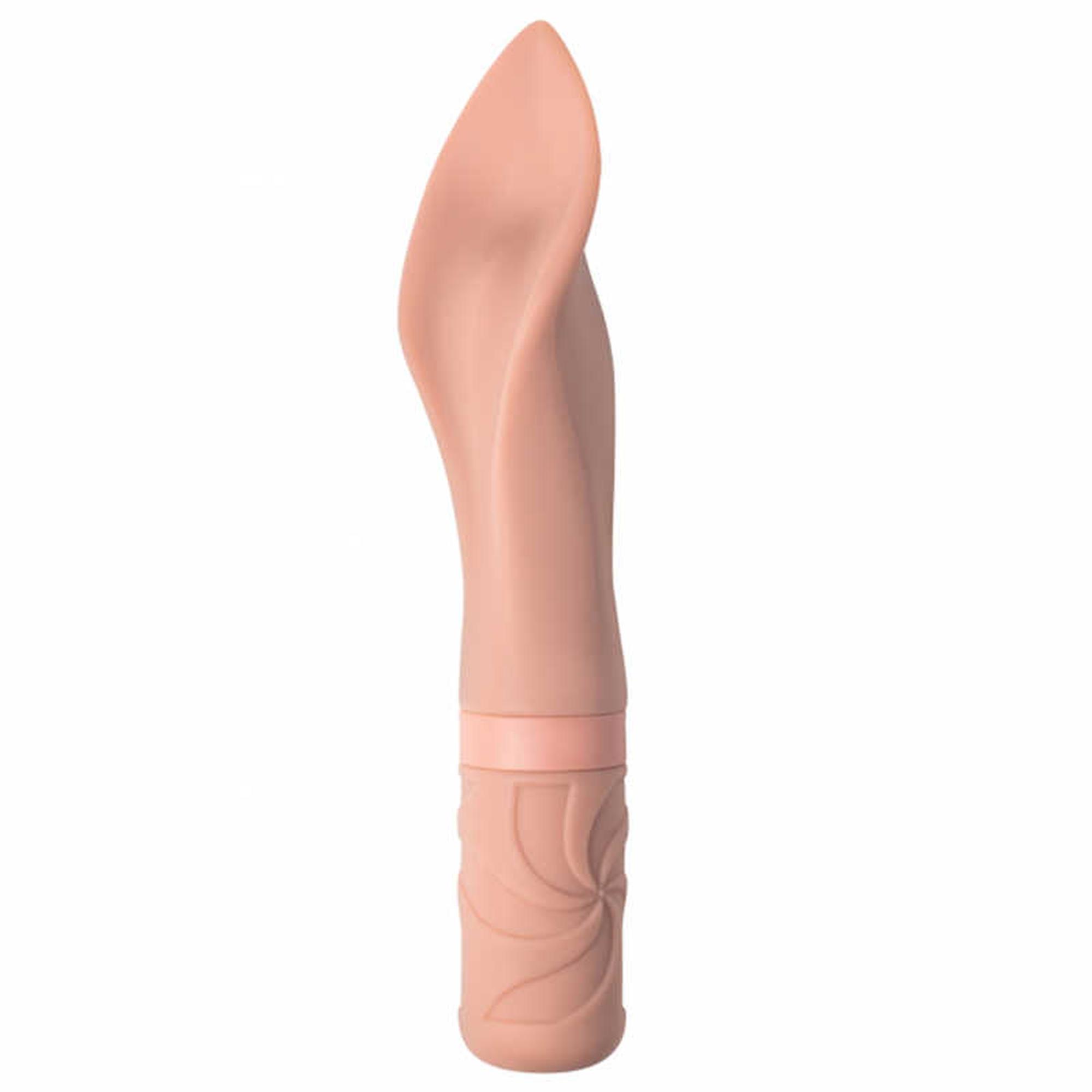 Kompaktowy wibrator w kolorze jasnobeżowym. Będziesz zaskoczony, jak łatwa w użyciu jest ta mała, elegancka zabawka. Model posiada główkę w postaci szerokiego, wklęsłego płatka z niewielką stymulującą wypustką wewnątrz. Bardzo wygodne jest używanie zabawki do pieszczenia łechtaczki, warg sromowych i innych zewnętrznych stref erogennych. Możesz zanurzyć zabawkę w pochwie i cieszyć się trzepotaniem głowy w ciele, doprowadzając się do orgazmu w ciągu kilku minut. Potężny moduł wibracji obsługuje 10 różnych trybów stymulacji. Zabawka zasilana jest akumulatorem zasilanym kablem USB. Kompaktowy rozmiar gadżetu pozwala mieć go zawsze przy sobie w torebce lub kosmetyczce. Długość 15,2 cm, średnica 3,5 cm.