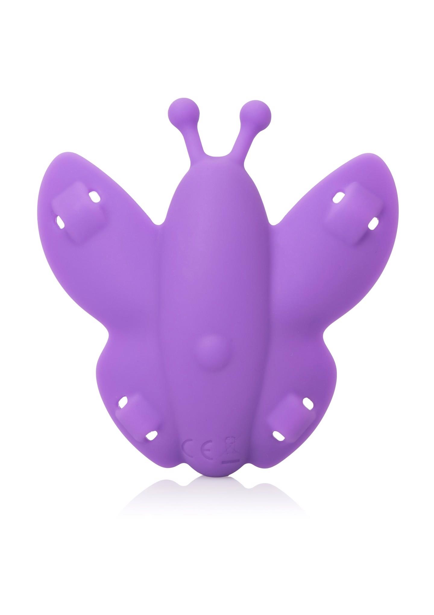CalExotics Venus Butterfly Silicone Remote Wireless Micro Butterfly is here to send you flying into a world of pleasure with hands-free fluttering action. This world famous sex toy for women is a sensationally compact vibrating massager with fluttering wings, fully adjustable harness and a remote control range of up to 16.5 feet for an earth-shattering hands-free experience. Spread your wings and embrace the 10 mind-blowing functions from this incredible clitoral vibrator. Since this slim sex toy can be worn just about anywhere, it is an erotic toy box essential for every adventurous pleasure seeker.With its compact size and waterproof body, you can take this deliciously intense vibrator for a dip and get steamy with each powerful flutter. When it’s time to get playful, simply slip into the adjustable harness for hands-free sensations, or remove the straps to get seductive and use it as a clit vibrator. Embrace waves of flawless pleasure wherever you go with the compact vibe’s intimately contoured shape and secure harness keep it close to erotic sweet spots. With an adventurous remote range of over 16.5 feet, our deliciously naughty adult toy will make sure you never have a boring night again. Let your pleasure take flight with the Venus Butterfly female sex toy.