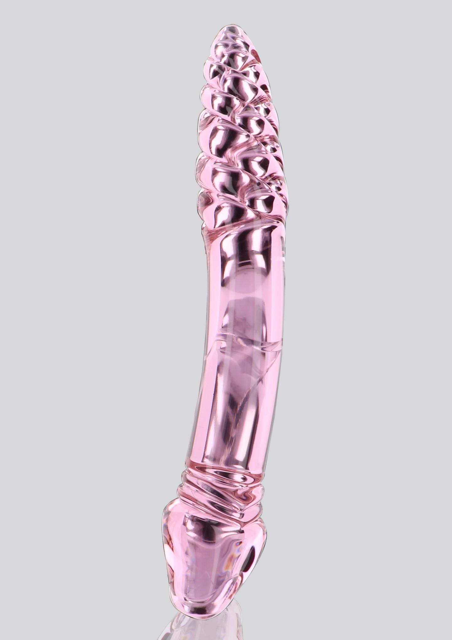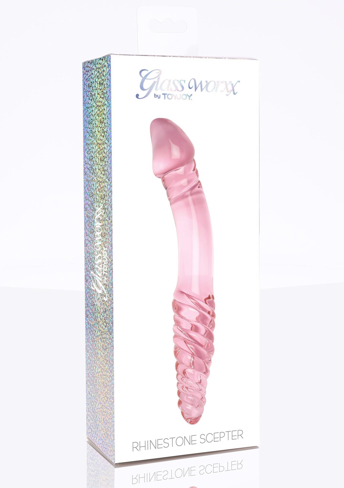The Rhinestone Scepter by TOYJOY GLASS WORXX is a unique double-ended dildo with sexy curves. The design features a realistic tip on one end and a textured and patterned section on the other end. Whether you want smooth satisfaction, or crave some mind-blowing love ridges and bumps: the Rhinestone Scepter offers 2-in-1 pleasure with its beautiful pink silhouette. Smooth, stylish, and classy: TOYJOY GLASS WORXX is a luxurious, hypoallergenic choice in intimate pleasure. This elegant collection of glass toys is sensually sculpted for your ultimate satisfaction. These highly-durable sex toys are made of first-class, non-porous glass that feels deliciously smooth to the touch, and offer many body-safe play options. Heat the glass under a warm water tap for warm, seductive indulgence. Or cool the glass with cold water for a tantalizing chilly touch that will make your toes curl with delight. TOYJOY GLASS WORXX is a prime choice for all your erotic fantasies, providing pure bliss, sculpted in the finest glass silhouettes. Now in a new packaging.
