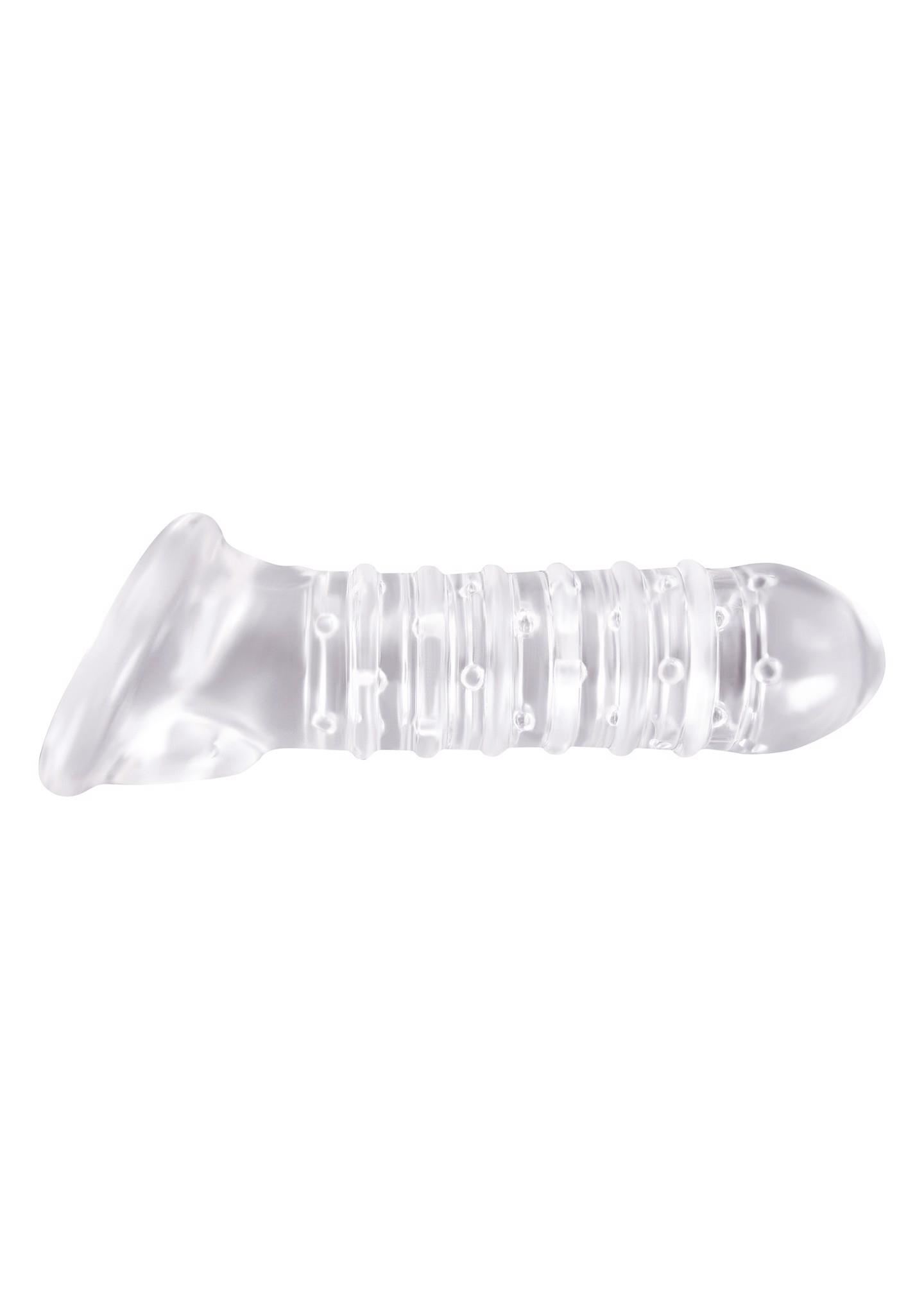 The Renegade Ribbed Extension by NS Novelties is a sensational penis sleeve to provide him with added girth and length for a very intense session of intimate pleasure. The design is ribbed externally and also has an inner tunnel lined with soft nubs to enhance user stimulation during intercourse. The sleeve is made of stretchy TPE and provides a comfortable, yet snug fit for a perfect all encompassing feeling for both him and his partner.
