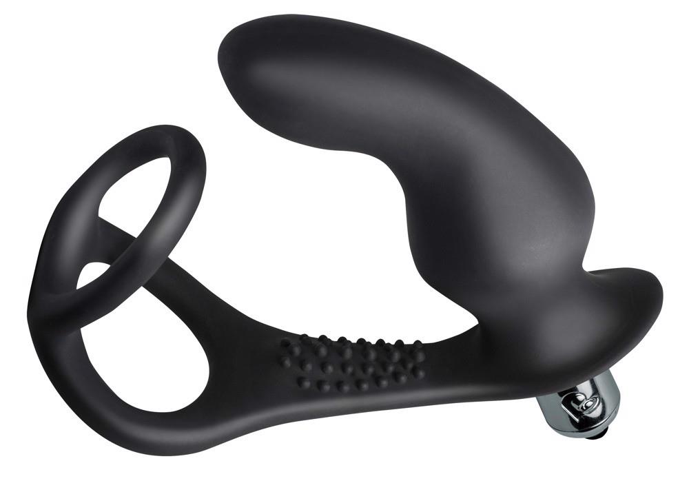 Ten rozciągliwy, czarny pierścień na penisa ekscytuje dzięki dodatkowej wibrującej wtyczce analnej i wypustkom na kroczu. Łaskocząca stymulacja analna z 10 różnymi trybami wibracji.