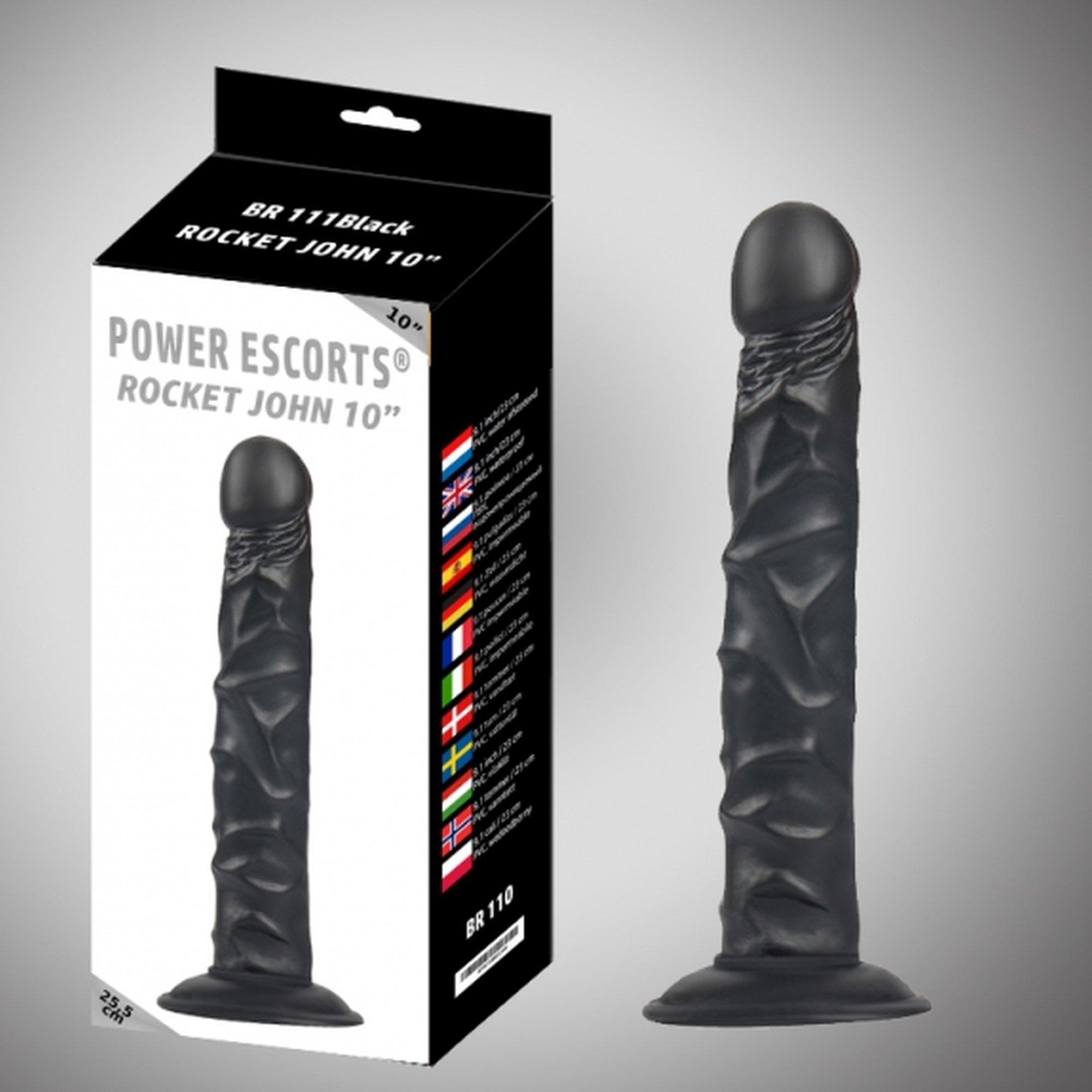 Power Escorts – BR111 – Rocket John – 10 cali / 25,5 CM – Czarny – Ogromny realistyczny dildo – ładny i naprawdę duży rozmiar, gdy naprawdę chcesz coś poczuć – z przyssawką – wytrzymały, ale elastyczny – zapakowany w kolorowe pudełko z Silverprint – idealny do dać lub rozpieścić się