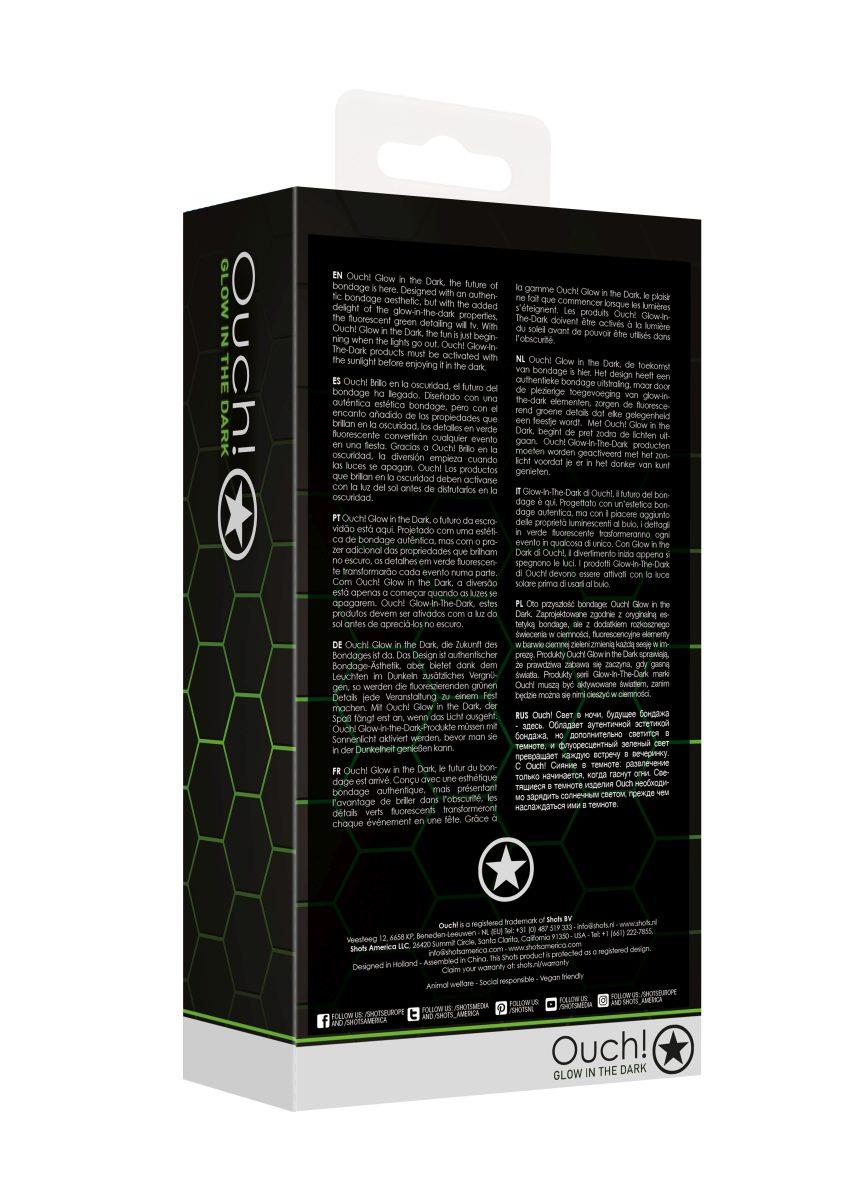 Ouch! Glow in the Dark. Zaprojektowane zgodnie z oryginalną estetyką bondage, ale z dodatkiem rozkosznego świecenia w ciemności, fluorescencyjne elementy w barwie ciemnej zieleni zmienią każdą sesję w imprezę.