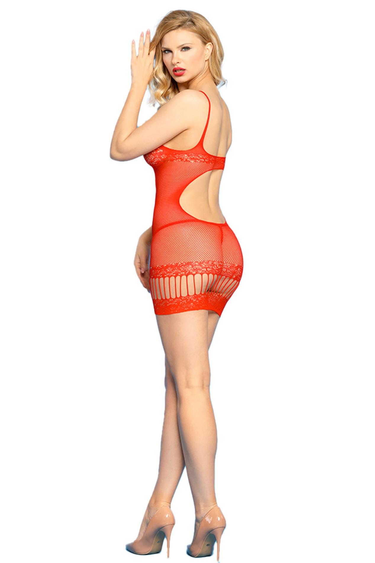 Sukienka bez rękawów z odsłoniętym plecami została wykonana z delikatnej siateczki, która doskonale otula ciało, podkreślając jego kształty i zapewniając idealne dopasowanie. To tkanina o niesamowitej elastyczności, która sprawia, że sukienka doskonale podkreśla krągłości sylwetki.