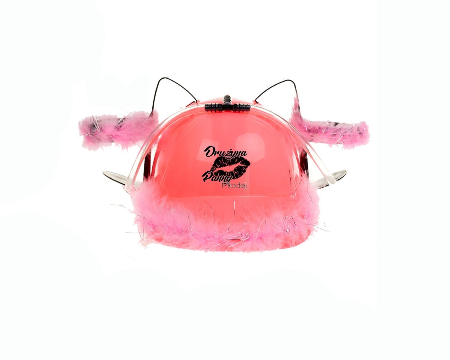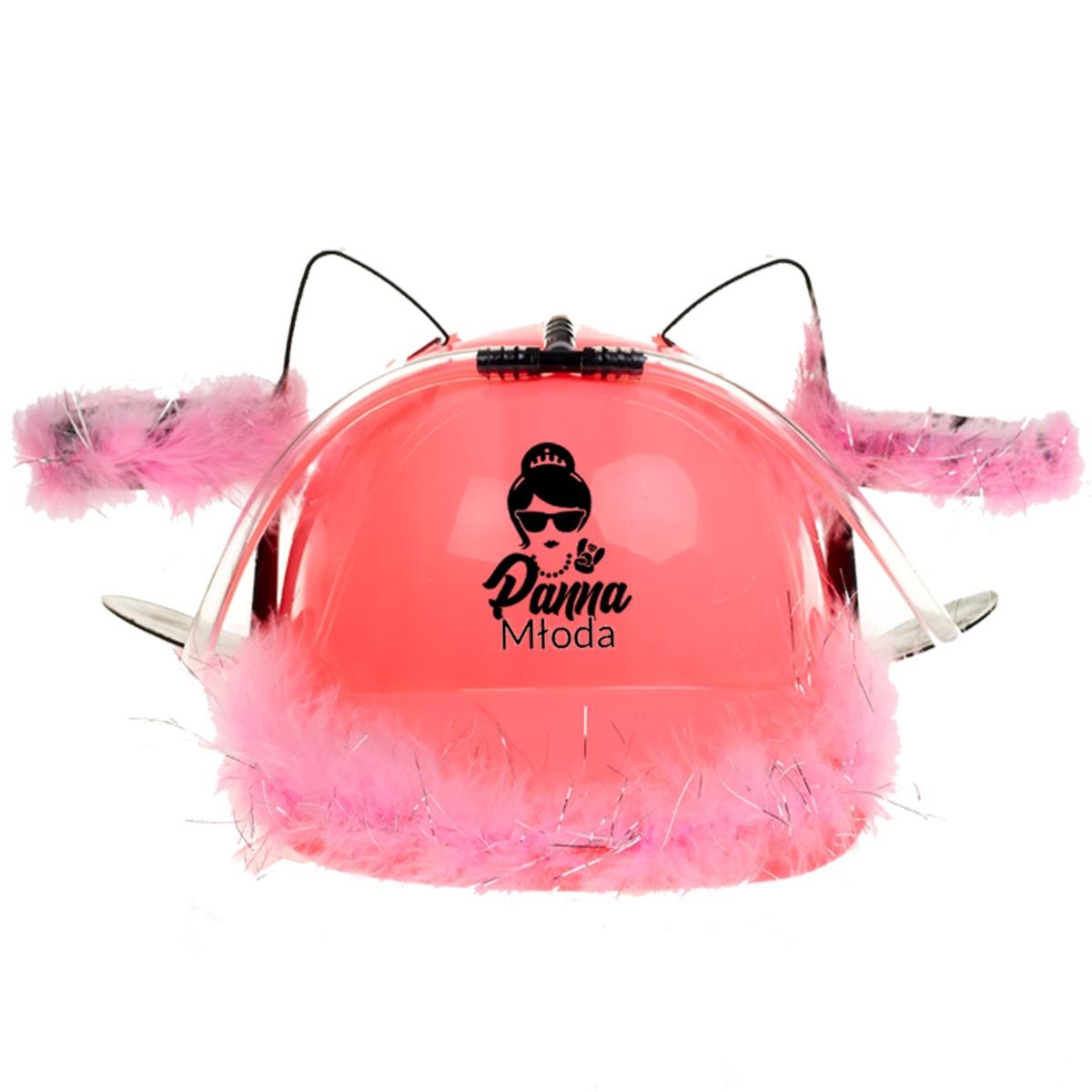 Różowy kask na piwko z nadrukiem “Panna Młoda” lub “Drużyna Panny Młodej” na Wieczór Panieński.