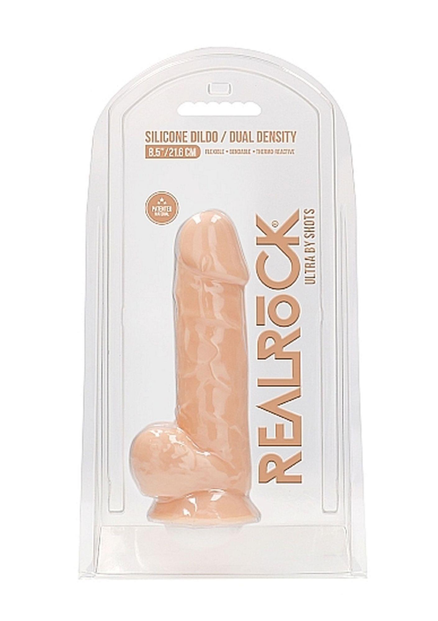 Model z jądrami mierzy 21,6 cm wysokości wraz z przyssawką, głębokość penetracji wynosi 15,8 cm, a obwód 5 cm. Poczuj doskonałą jakość wykonanej z silikonu skóry, którą wyłożone jest urządzenie, oraz rewolucyjnego wypełnienia o dwóch różnych konsystencjach. Wyższy współczynnik elastyczności i lepsza gęstość nadają temu dildo realistyczny wygląd i fakturę, co pozwala Ci je zginać, kształtować i dostosowywać do własnych potrzeb. Po podgrzaniu (maksymalnie 30 sekund w kuchence mikrofalowej lub 2 minuty we wrzącej wodzie) zabawka staje się termoelastyczna i podatna na manipulację. Z drugiej strony, po ochłodzeniu zabawki w lodówce, staje się ona twardsza, oferując Ci wiele ciekawych zastosowań. Ten model REALROCK ULTRA został wyposażony w realistyczne jądra, zwiększając realizm doznań. Wszystkie dildo REALROCK ULTRA są wyposażone w wytrzymałą przyssawkę, dzięki czemu można przykleić je praktycznie do każdej gładkiej powierzchni. Dostarczany w trzech ekscytujących kolorach: imitującym skórę, brązowym i czarnym.